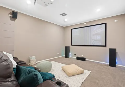 A sitting room and theatre room are also on this main level along with your master suite with a walk-in robe and ensuite. An open family room with a balcony is housed upstairs along with four bedrooms and two bathrooms including a second suite with a walk-in robe and an ensuite.