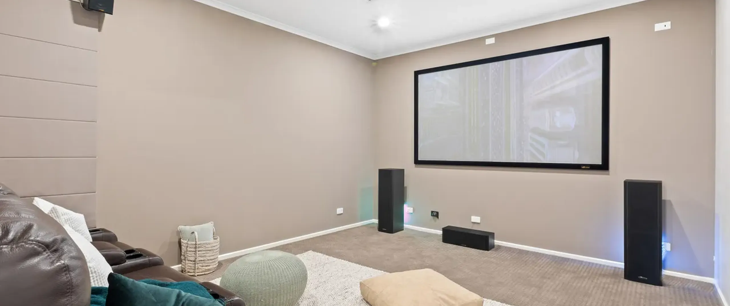 - Large theatre room with 100" projector screen, Onkyo stereo, Accusound surround speakers and theatre seating, perfect for home movie nights