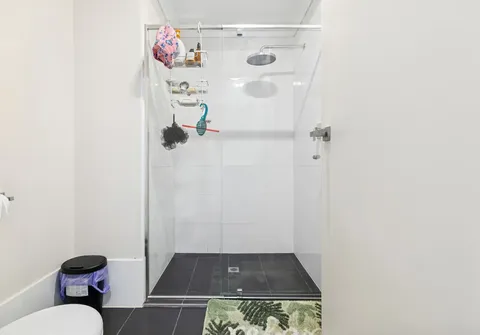 Both bedrooms are generously sized and enjoy easy access to the sleek, centrally located bathroom. Modern finishes, including contemporary tiling throughout, enhance the home’s fresh and stylish appeal.