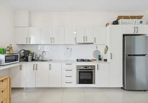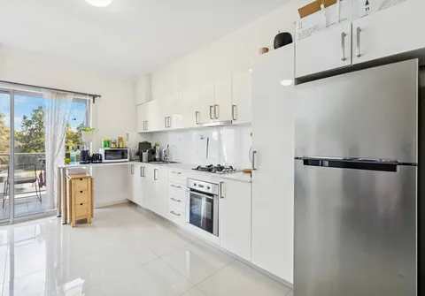 The light-filled open-plan lounge, meals and kitchen zone extends seamlessly to the balcony, providing an ideal setting for entertaining or relaxing. The contemporary kitchen is both stylish and functional, complete with ample cabinetry and clever storage solutions to suit the home chef.