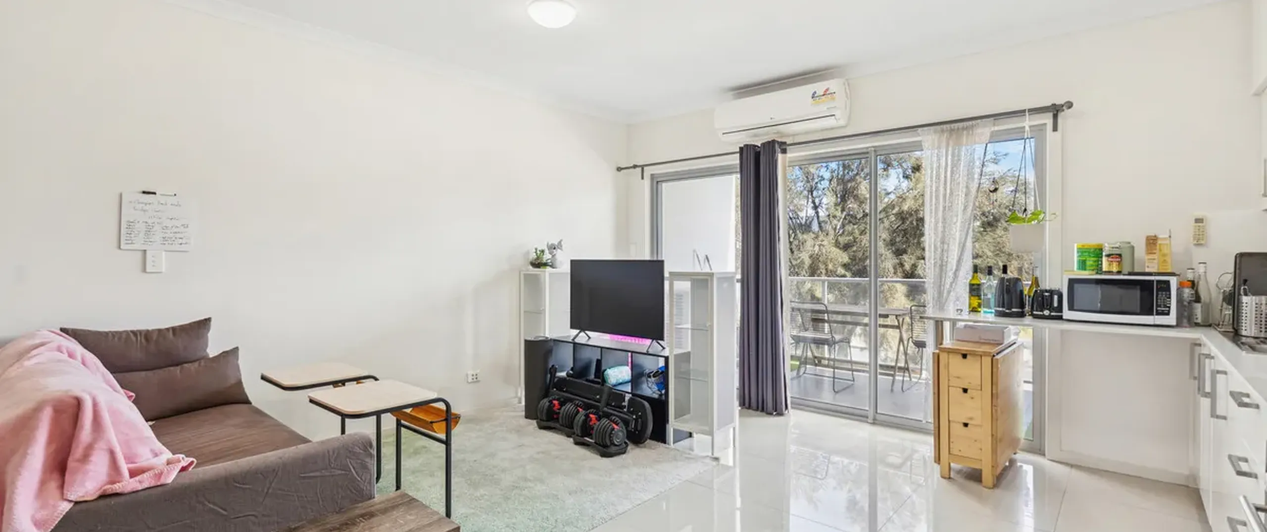- Light-filled open-plan lounge and meals area that flows effortlessly onto a private balcony