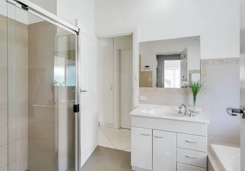 - Master bedroom with split system air-conditioner, walk-in robe and access to two-way bathroom