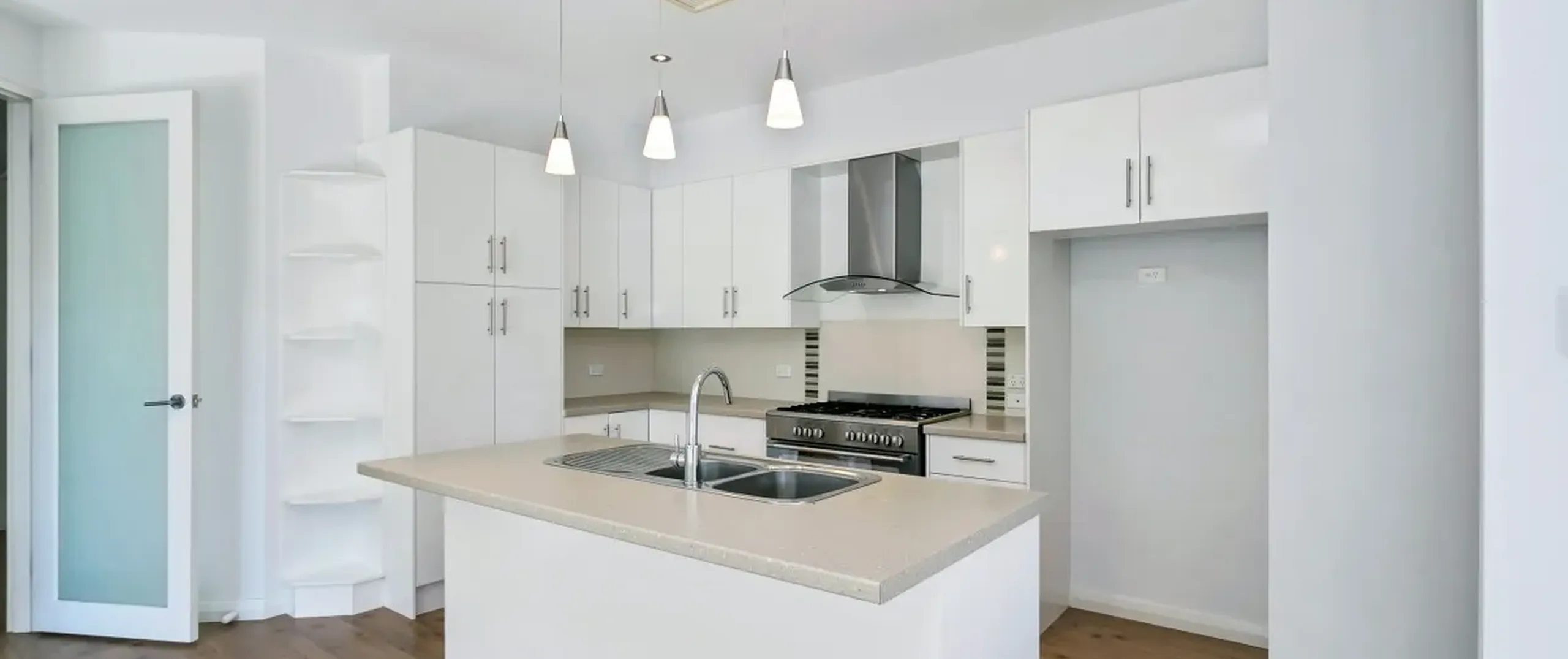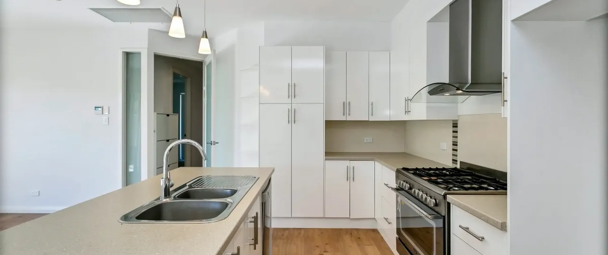 - Modern, stylish kitchen with 5 burner gas cooktop, stainless steel appliances and island benchtop with breakfast bar