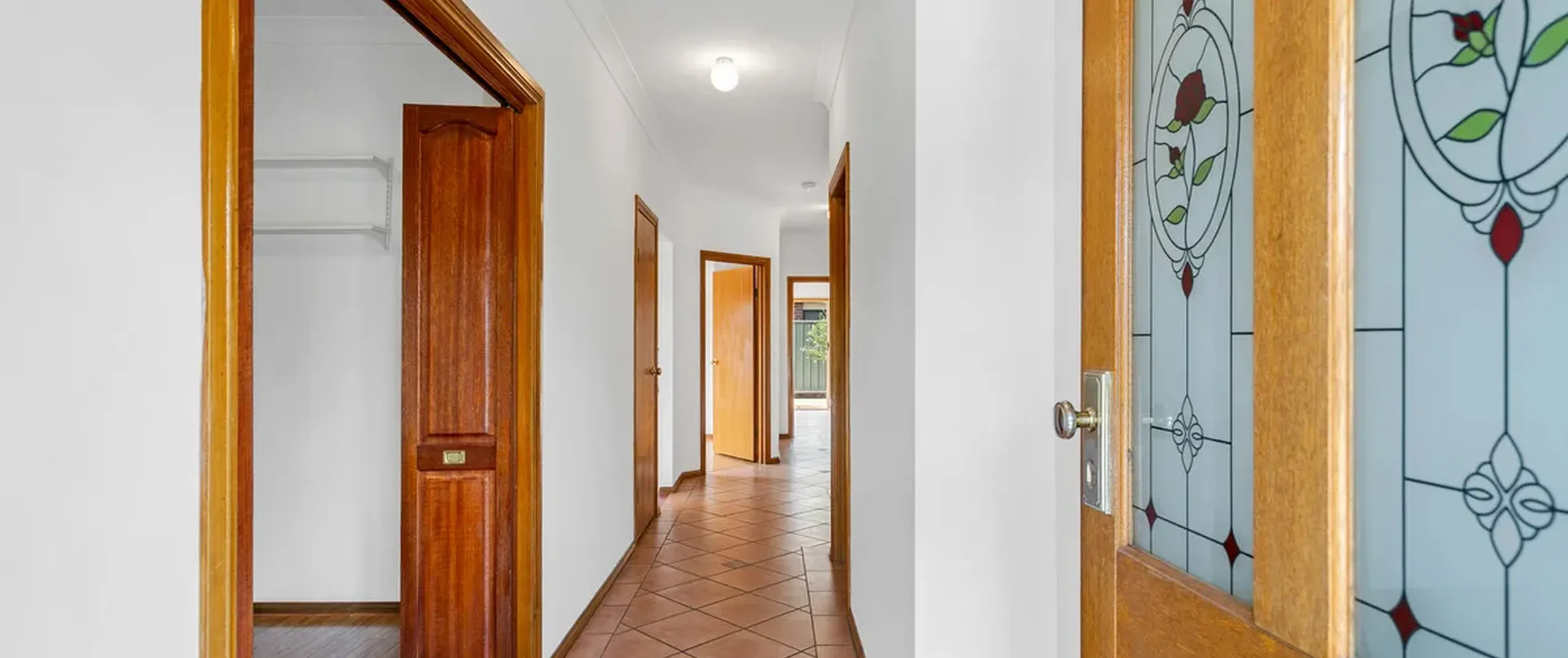 - Extra wide hallway leading to spacious open plan living area at rear with split system air conditioning