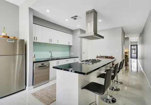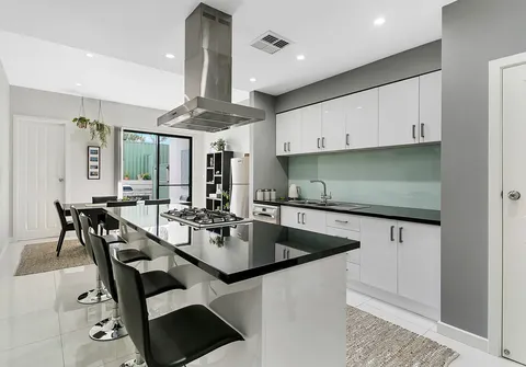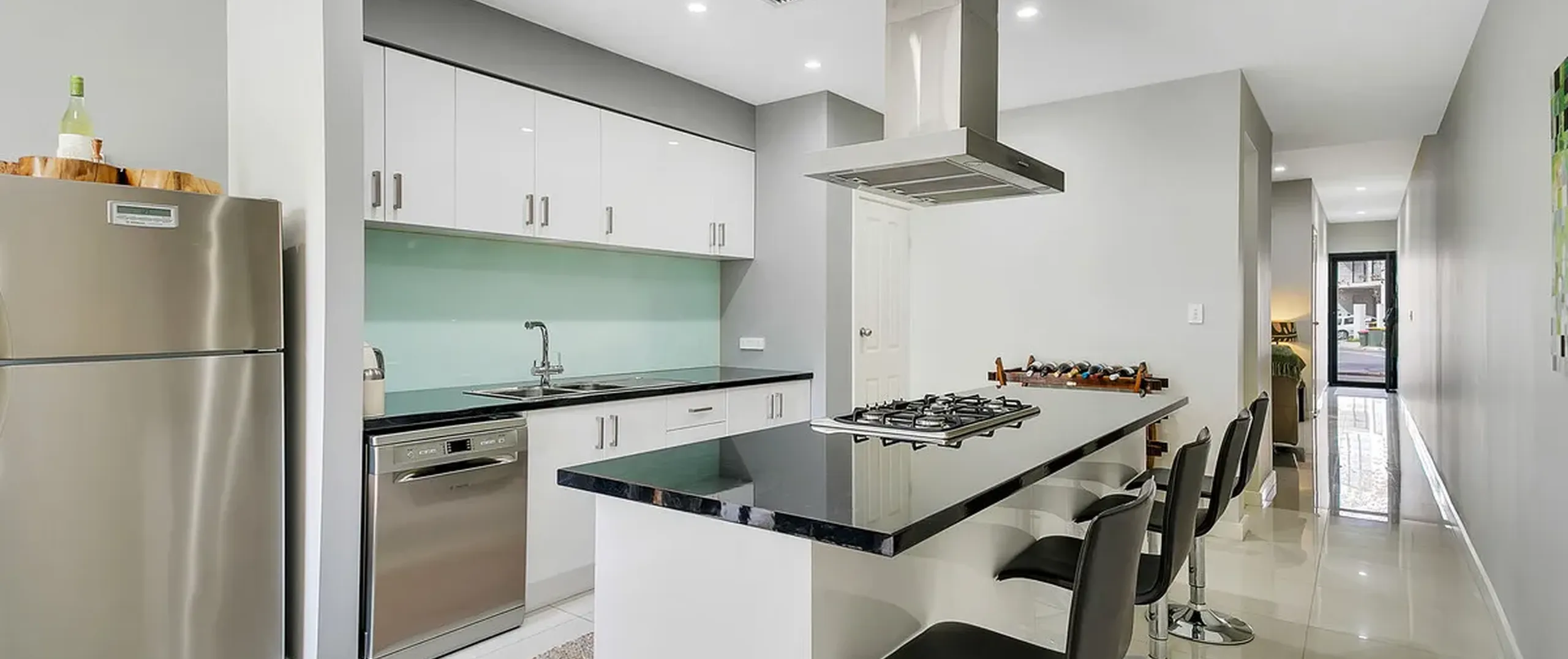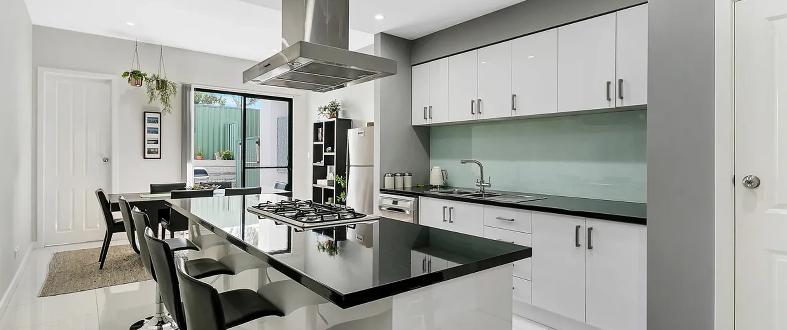 - A majestic feature is the stylish white 2 Pac kitchen with black bench tops, glass splashback, stainless steel appliances, soft closing cupboards and walk-in pantry. An extended island with an exaggerated stainless steel range hood is home to a magnificent ‘Blanco gas cooktop’ and ‘Lofra oven’ which is fit for anyone who is serious about cooking!