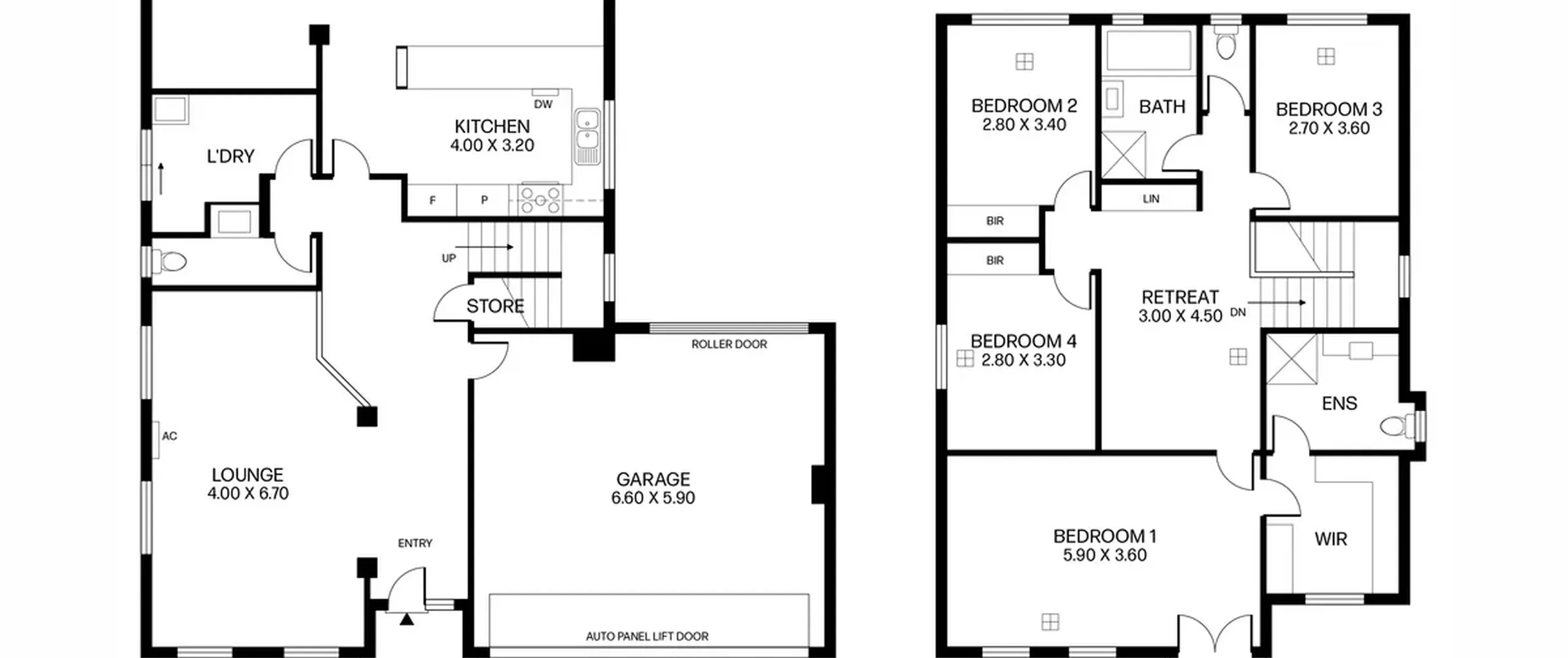 - Double garage complete with automatic panel lift door, internal access and additional roller door for drive through access