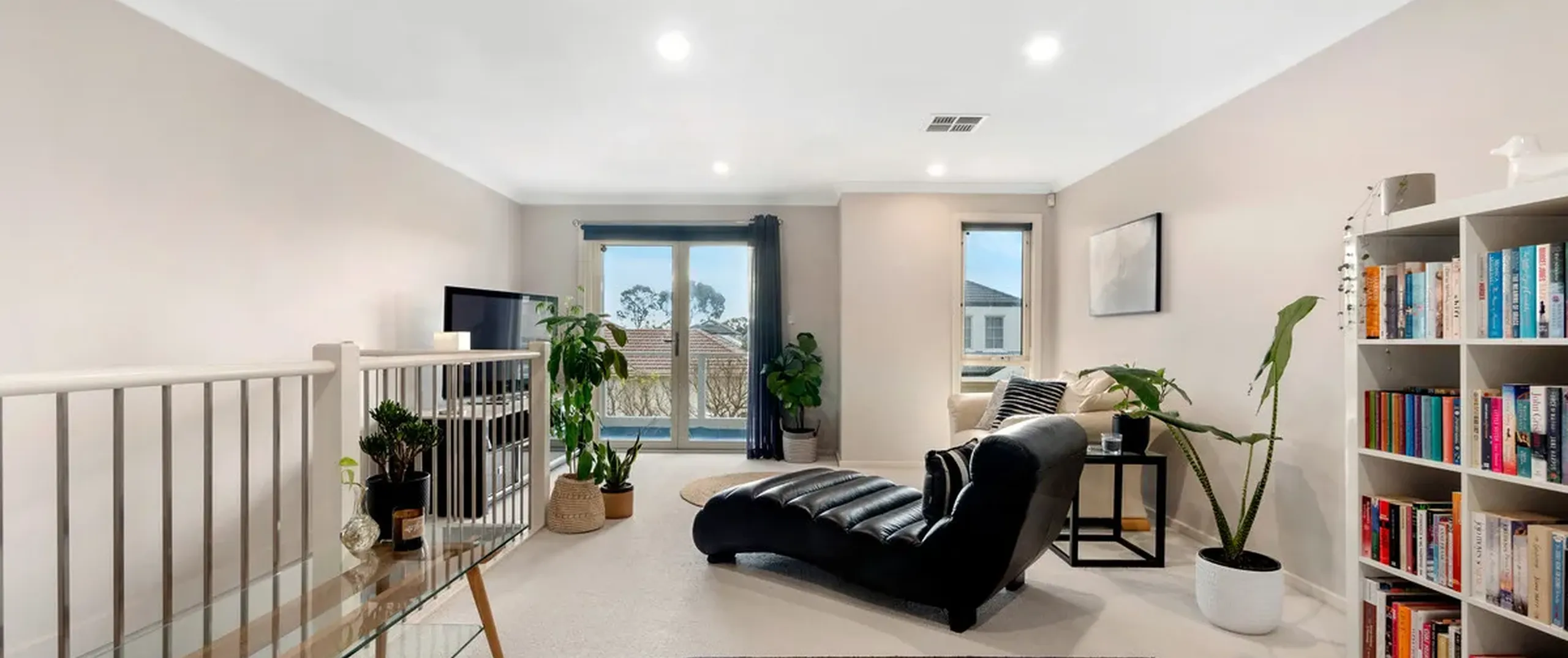 Upstairs the quality is immediately apparent and space is abundant with a second living room area connecting you to the four upper-level bedrooms including the master suite with a walk-in robe and ensuite! The second living room connects to a balcony, with views of the neighbourhood, plus there’s a modern bathroom that services the guest bedrooms.