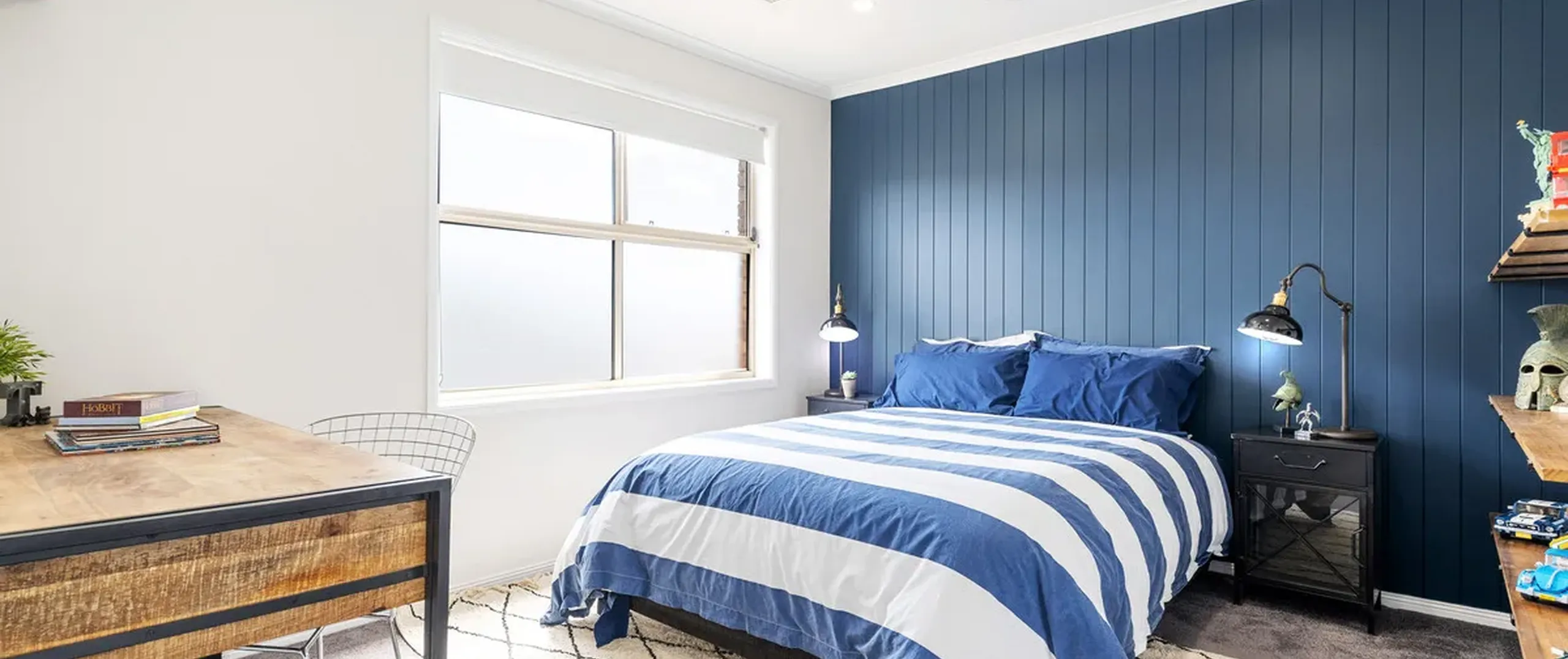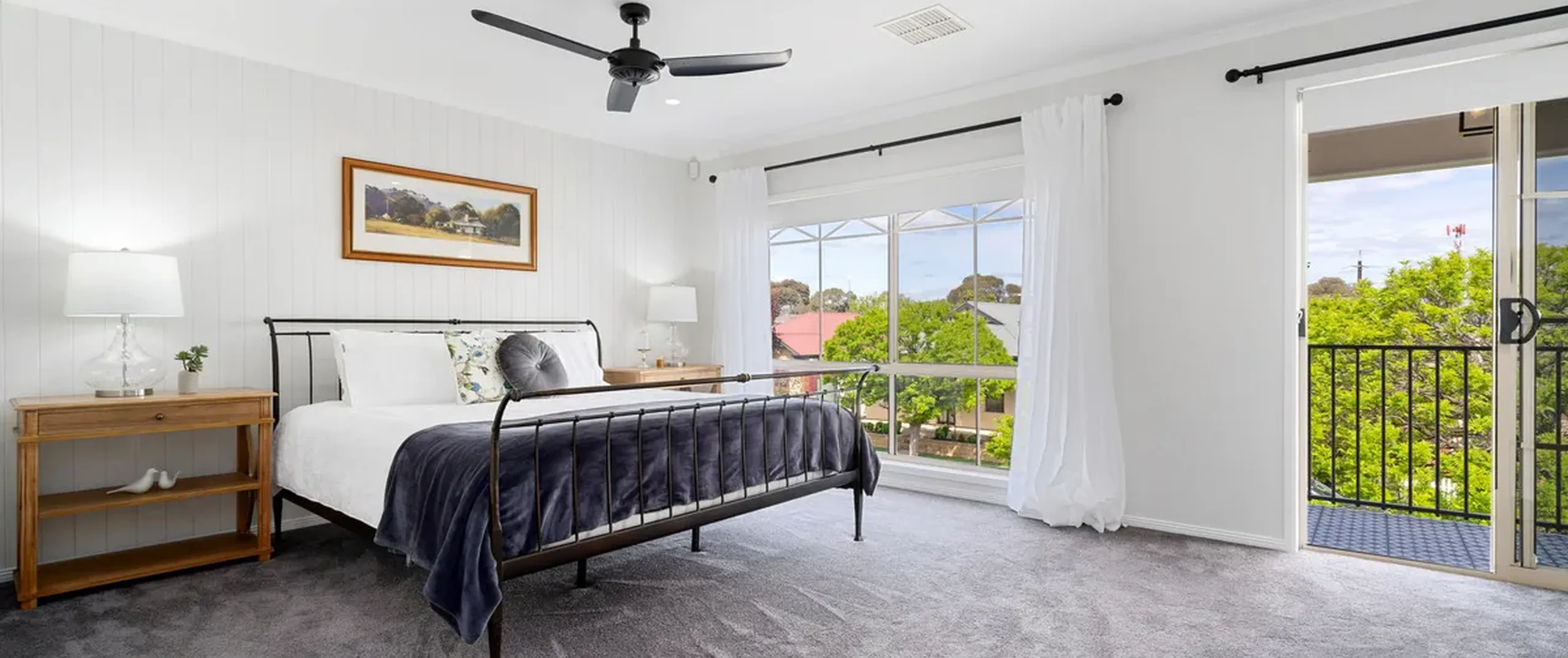 - Light filled bedroom five with ceiling fan and access to downstairs bathroom