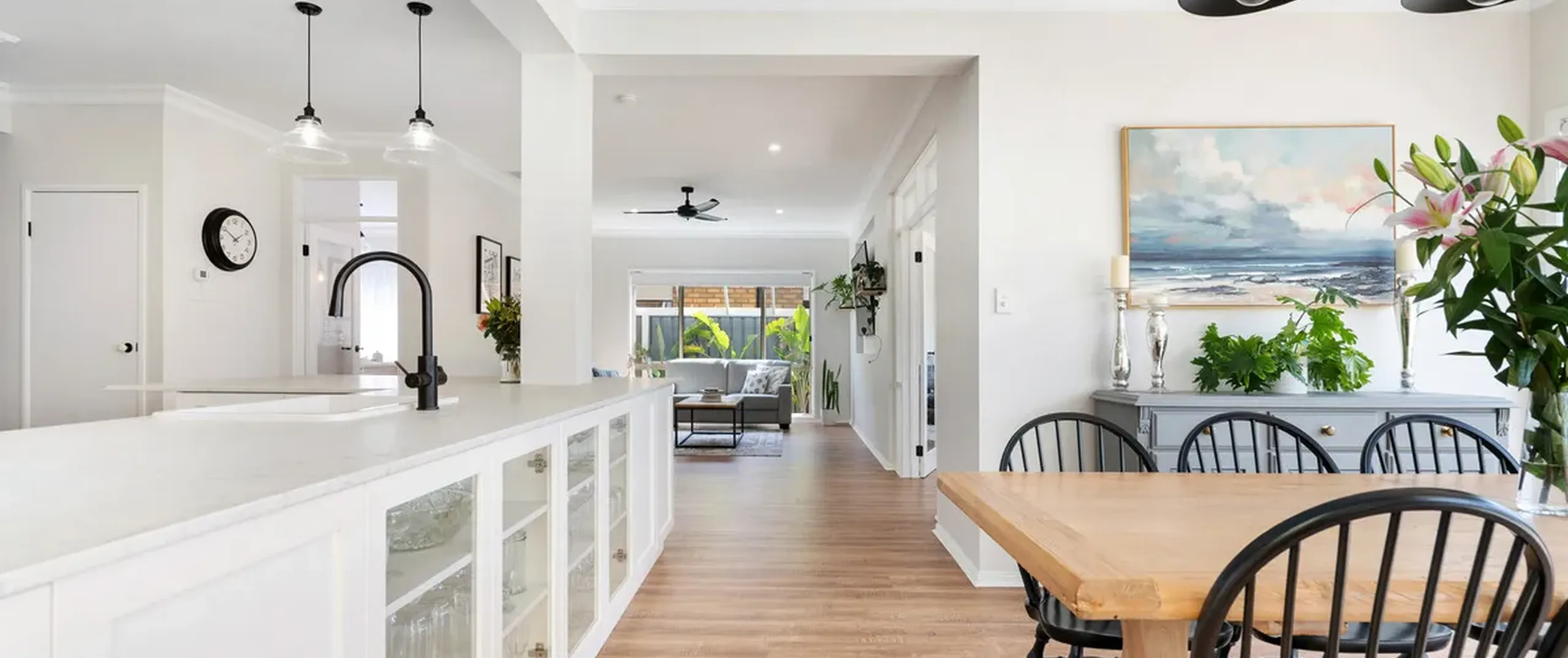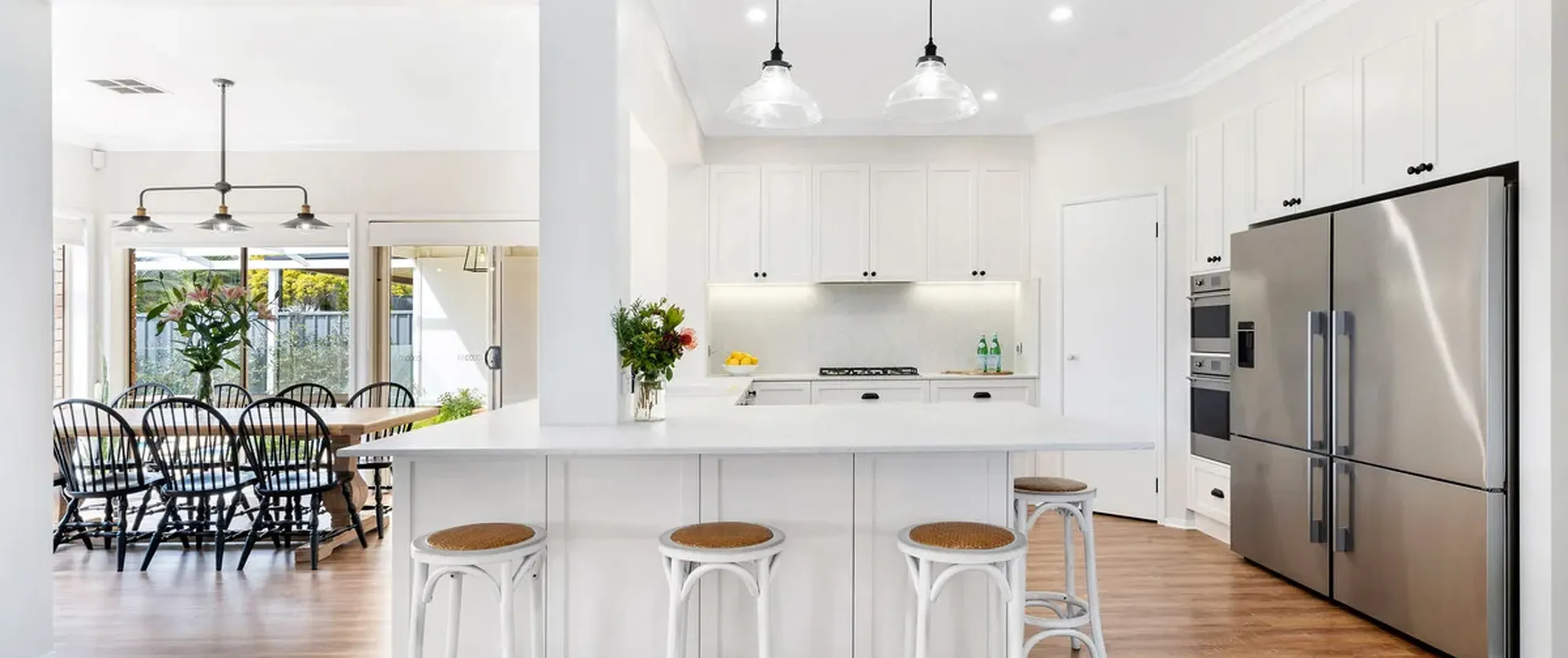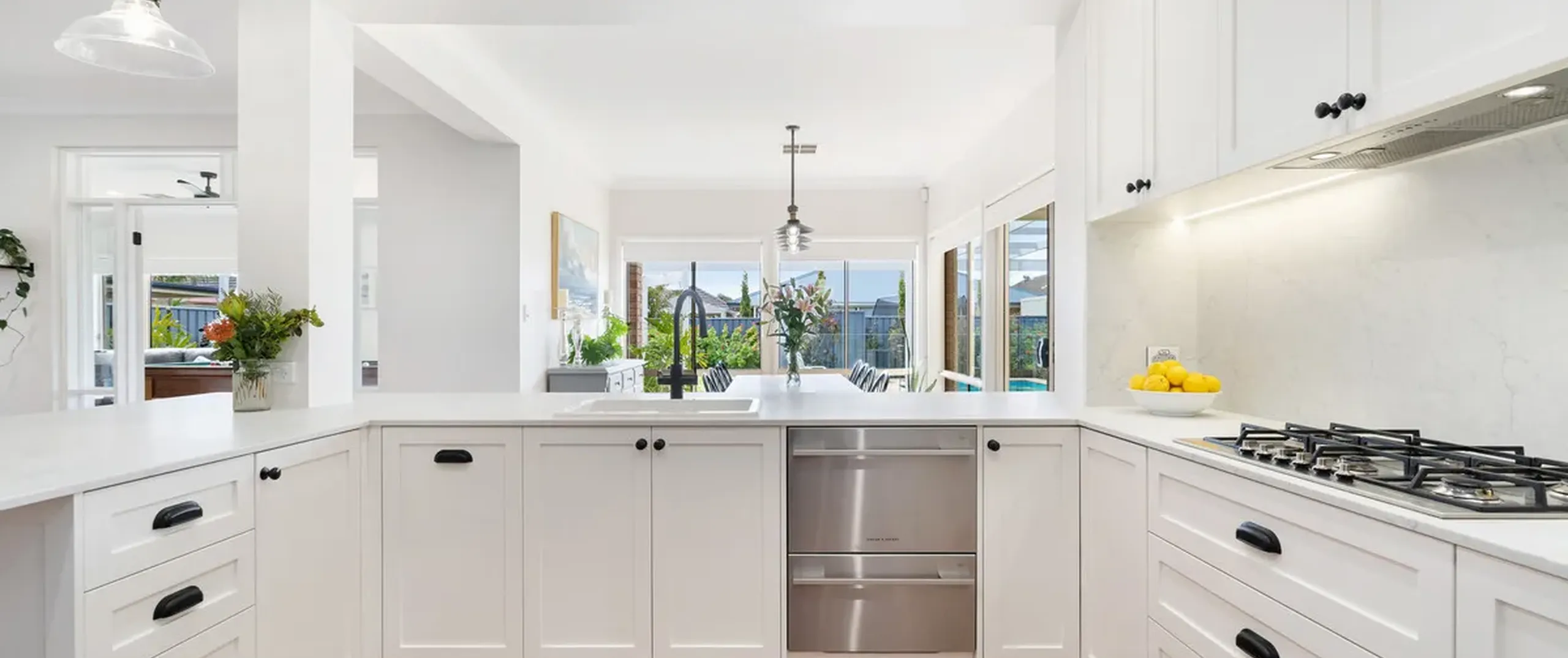 - Stylish kitchen featuring a breakfast bar, walk-in pantry, ample cupboard and bench space and quality stainless steel appliances including dishwasher