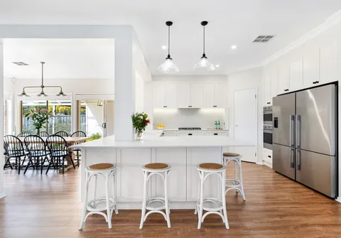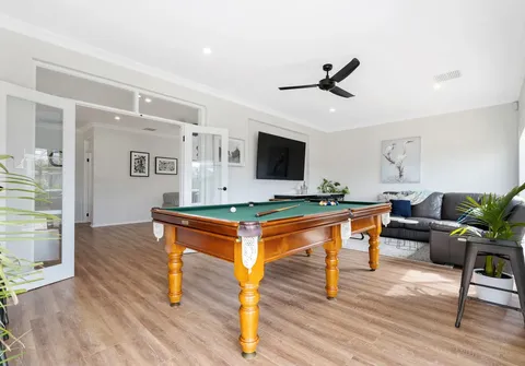 Downstairs you will notice an inviting formal lounge and dining set off the grand entry hallway in addition to a fifth bedroom, full third bathroom and laundry with ample cupboard space. The stunning open-plan kitchen, family and dining area is spacious and flows seamlessly to a well-appointed games room with built-in bar, offering the perfect space to host and entertain guests. The recently transformed kitchen boasts the very best of everything with quality stainless steel appliances, sweeping stone benchtops and a walk-in pantry, ready for the eager cook to enjoy.