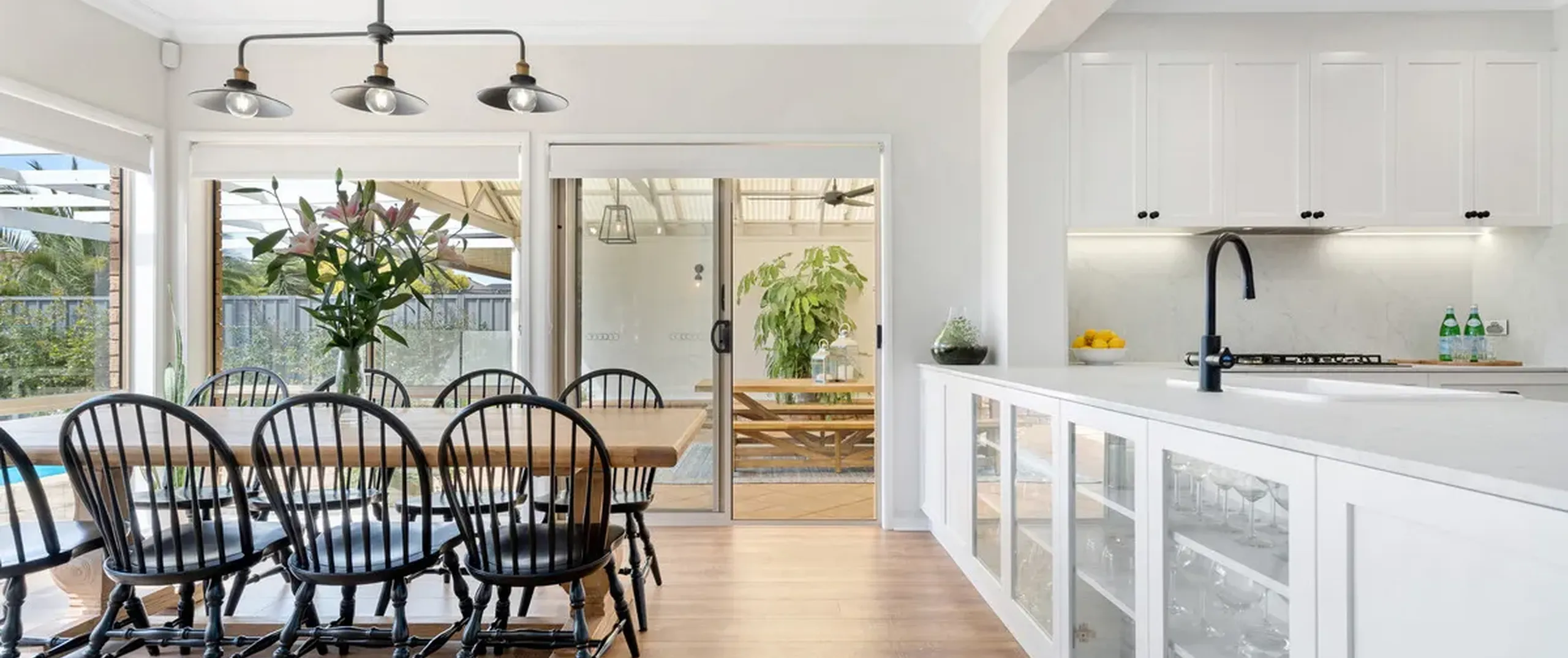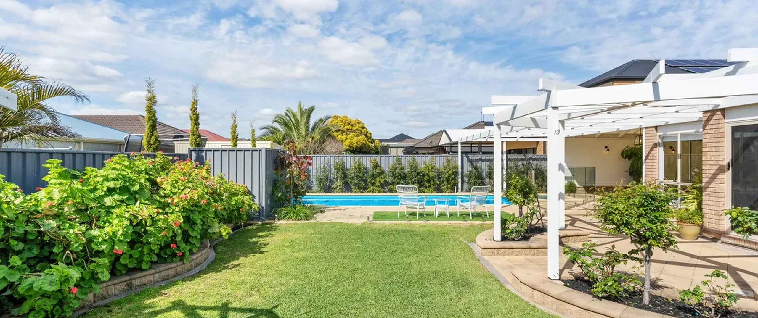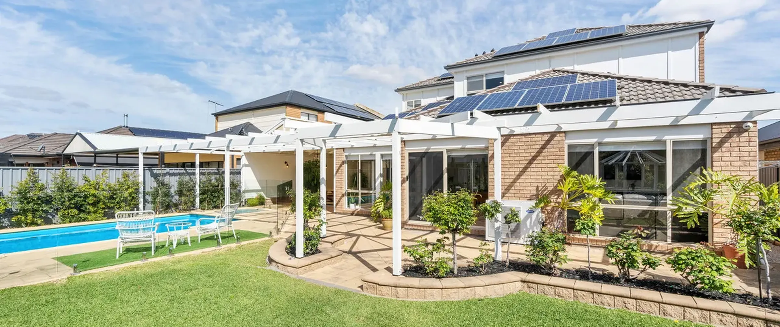 - Expansive pergola entertaining area overlooking the backyard