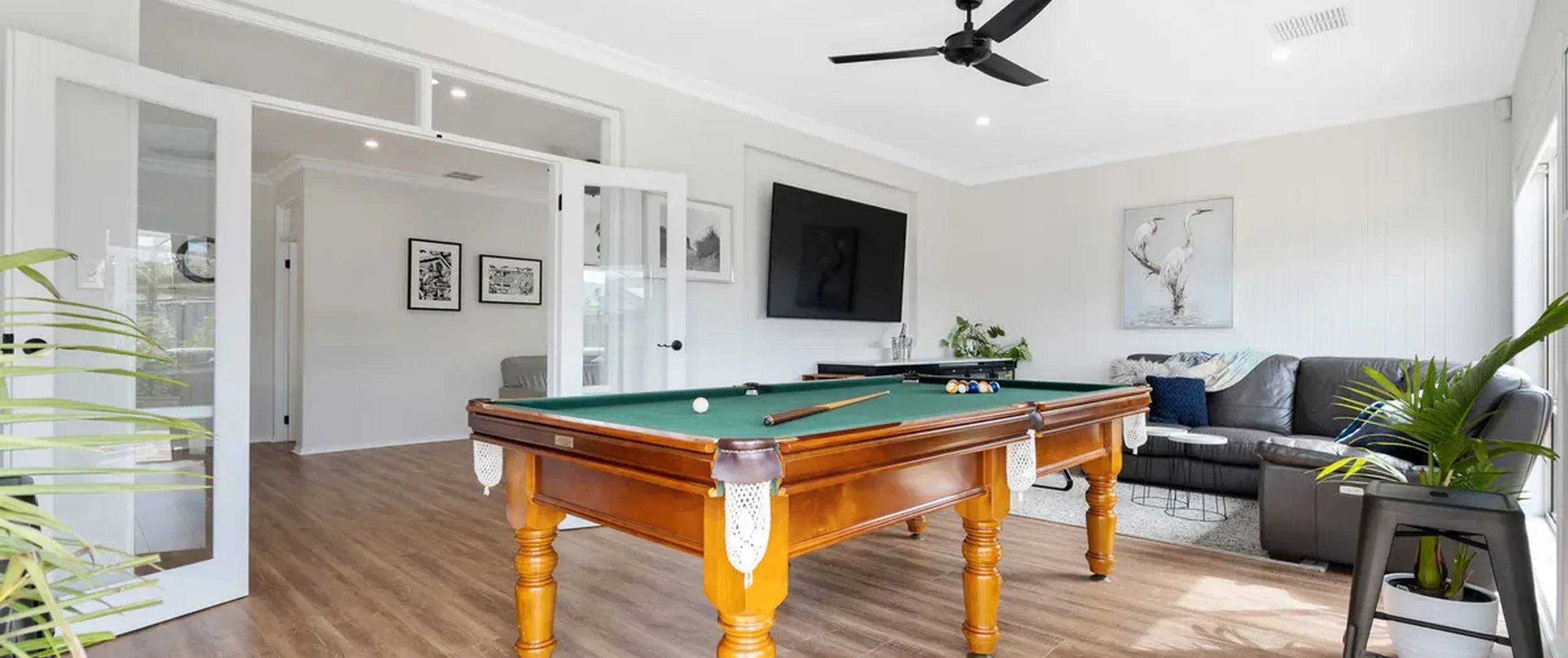 - Spacious games room with built-in bar, perfect for hosting guests