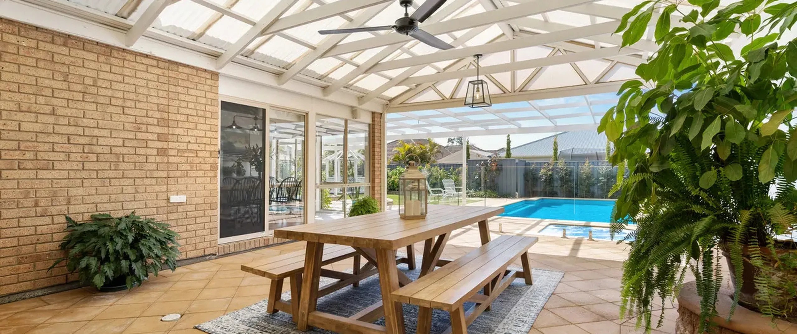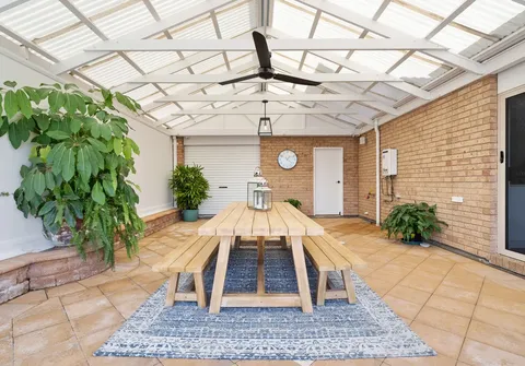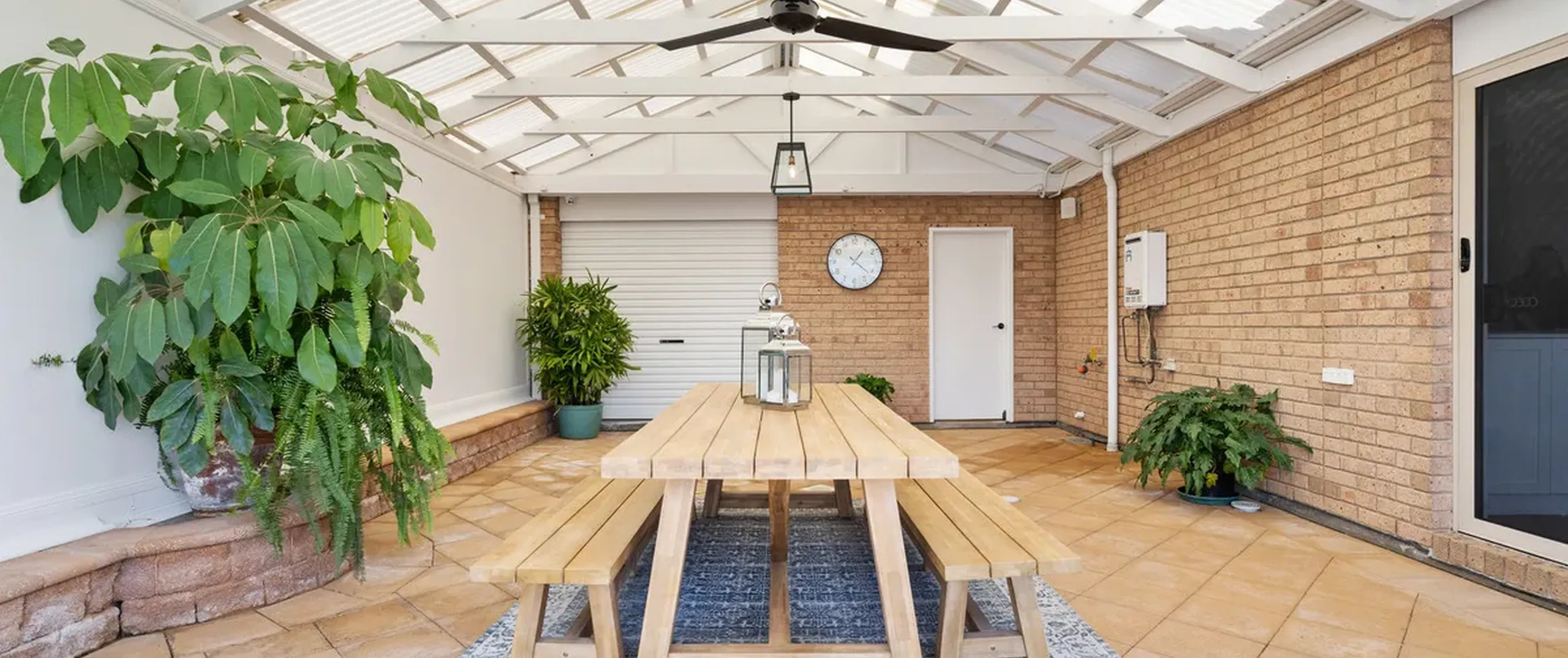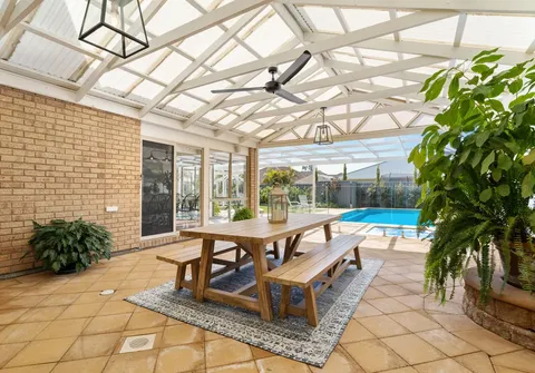 - Impressive undercover entertaining area with outdoor ceiling fan and access to the garage