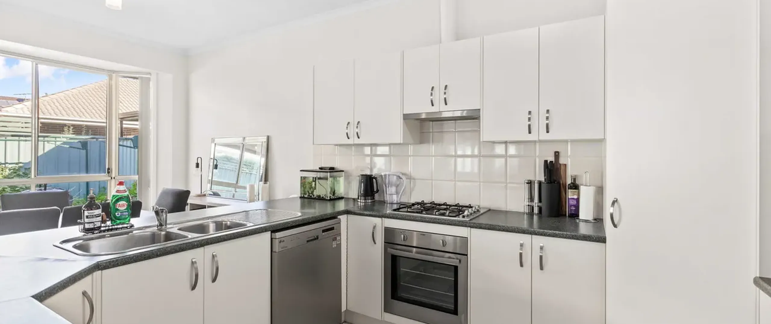 - Spacious kitchen with ample bench space, gas stove cook top, stainless steel appliances and plenty of storage space