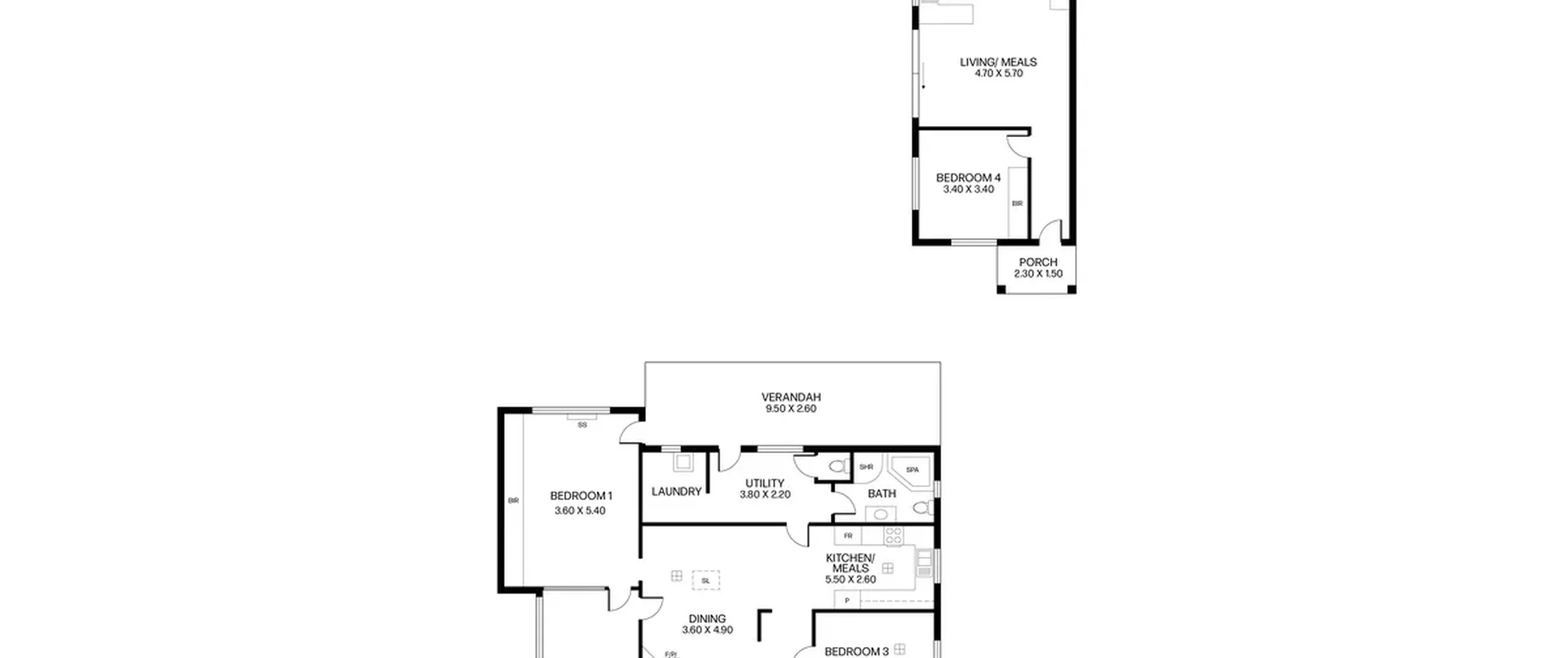 - Detached fully serviced two-bedroom, one-bathroom homette situated in the rear yard with a spacious lounge room with split-system air-conditioning and a spacious living, meals and kitchen area