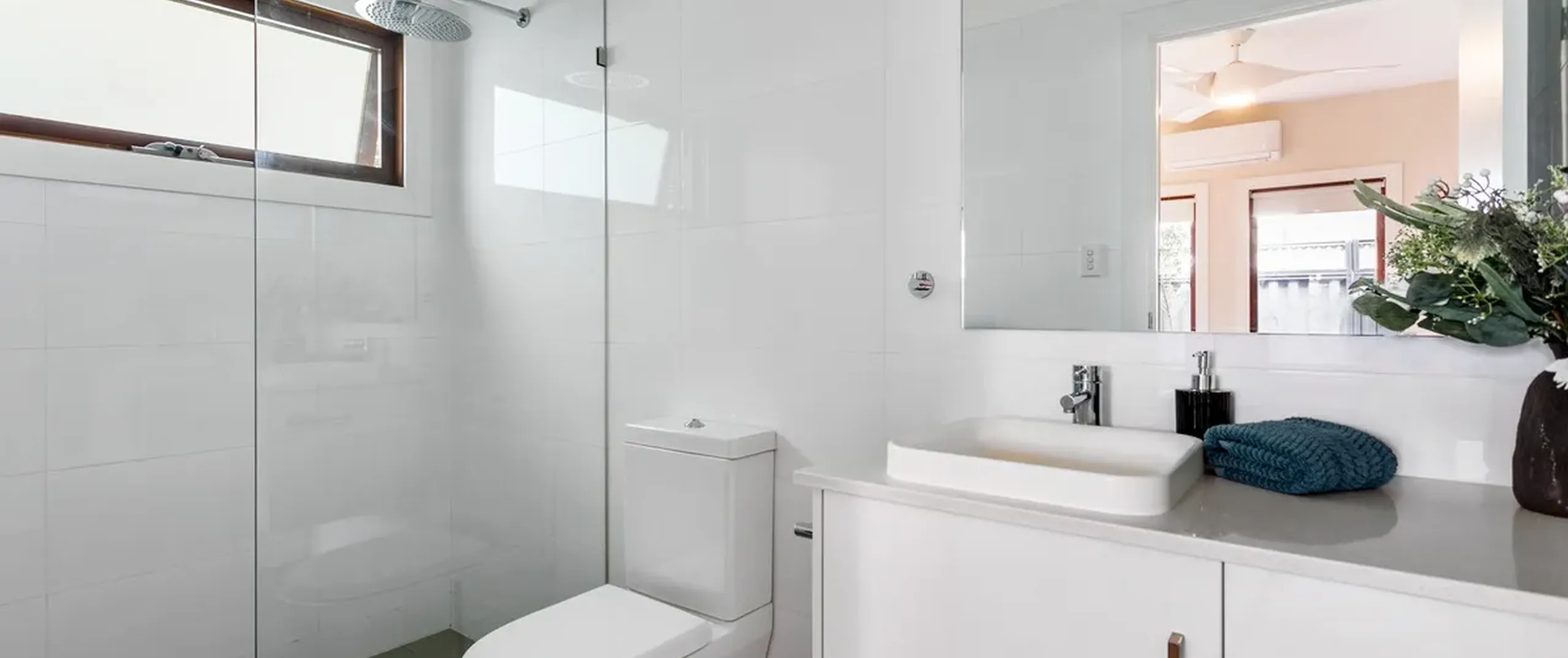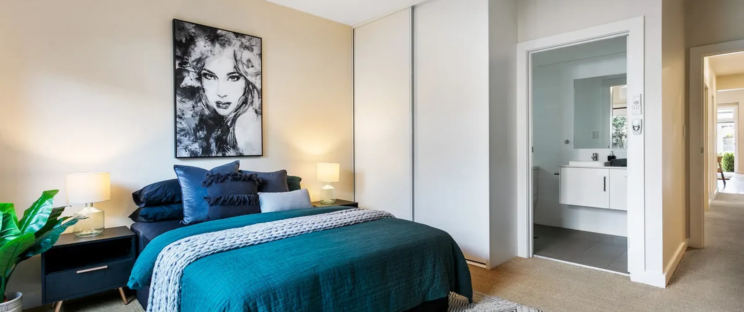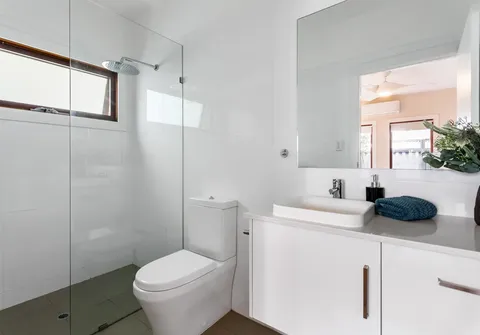 - Large master bedroom complete with a chic ensuite, built-in robe, split system air conditioner and ceiling fan