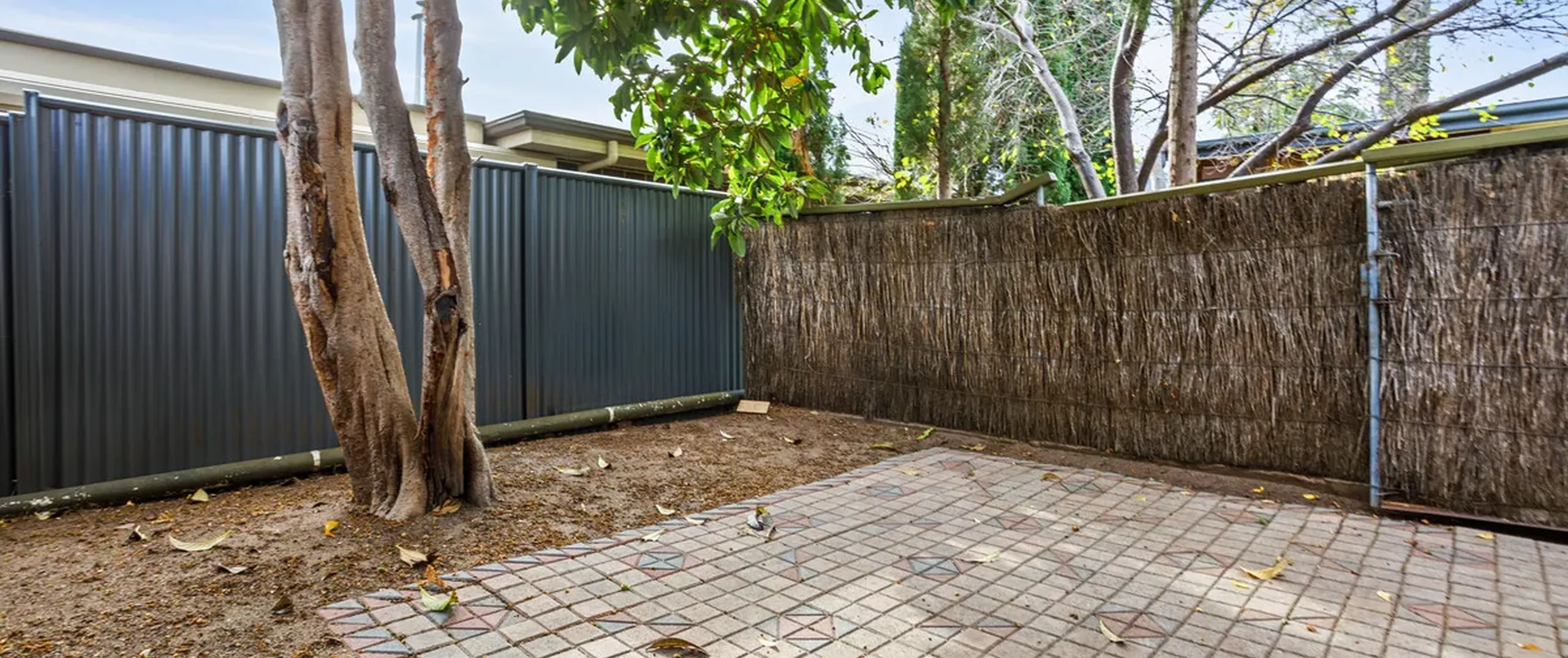 - Low-maintenance courtyard with garden shed