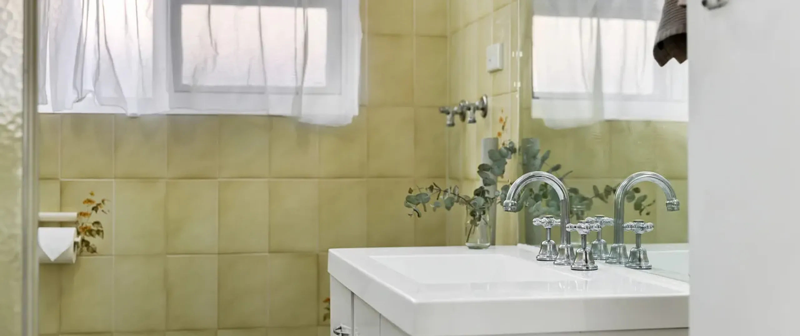 - Neat and tidy bathroom incorporating laundry