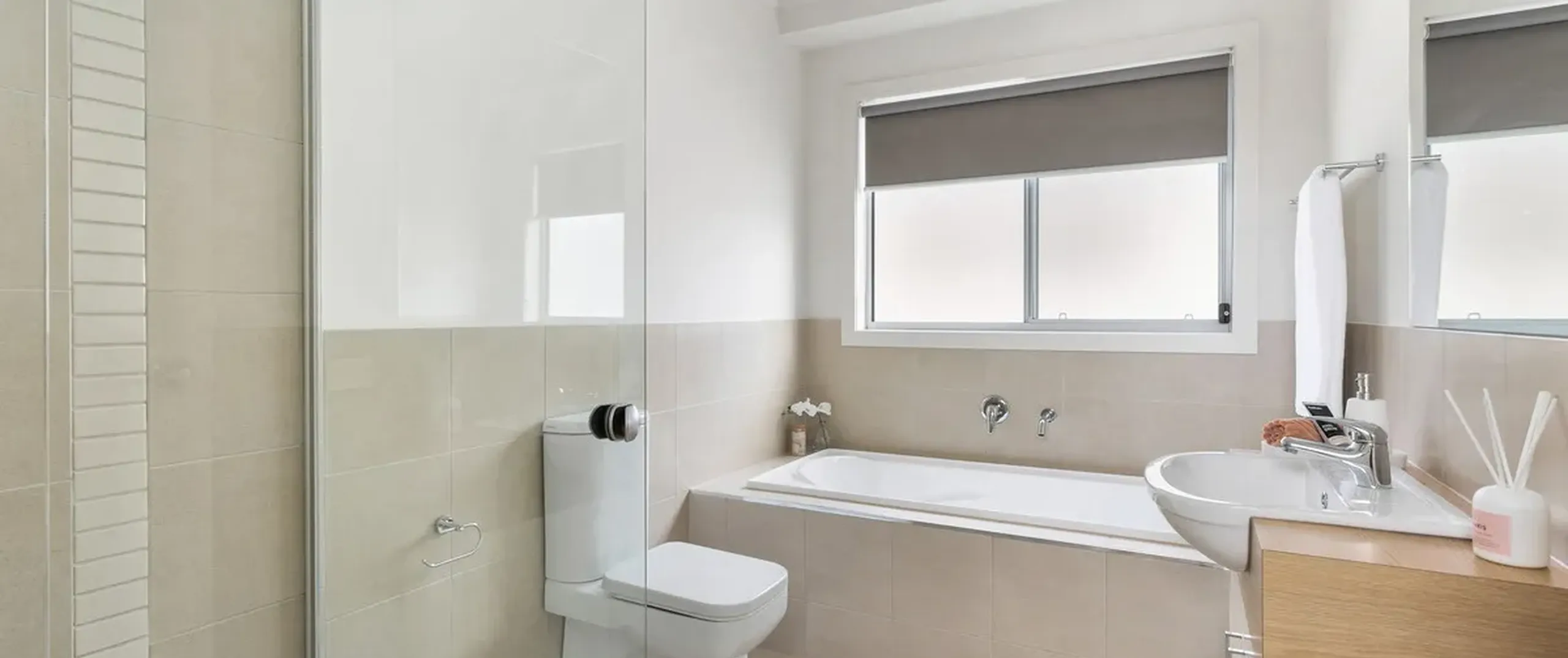 - On-trend bathroom with bath, shower and toilet