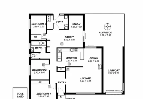 - Single carport with automatic panel lift door