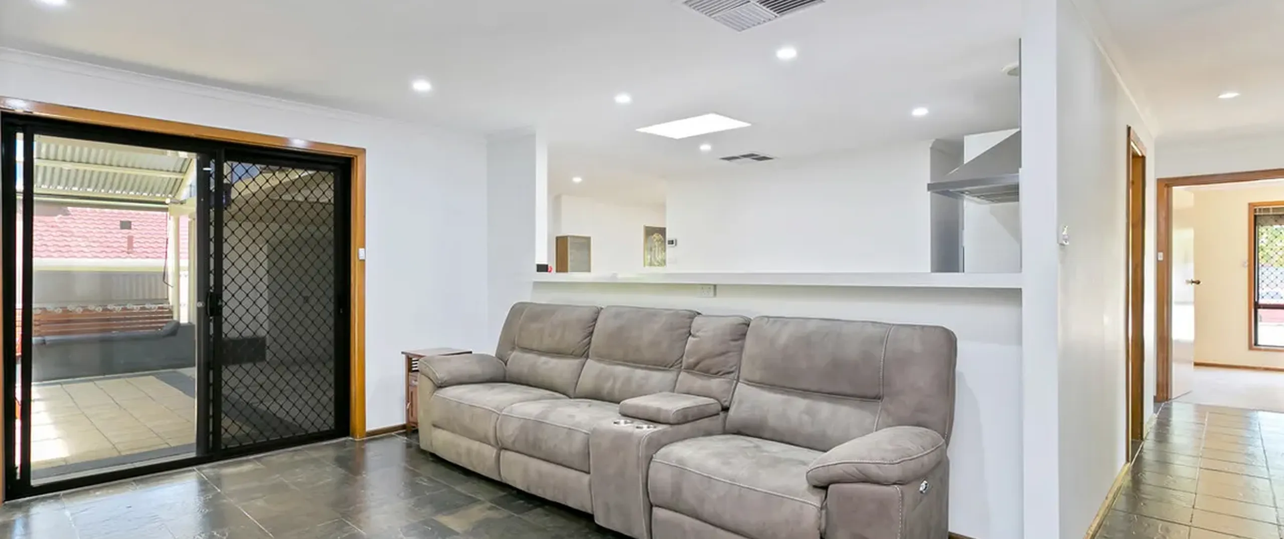 - Light filled lounge and dining room with air conditioner