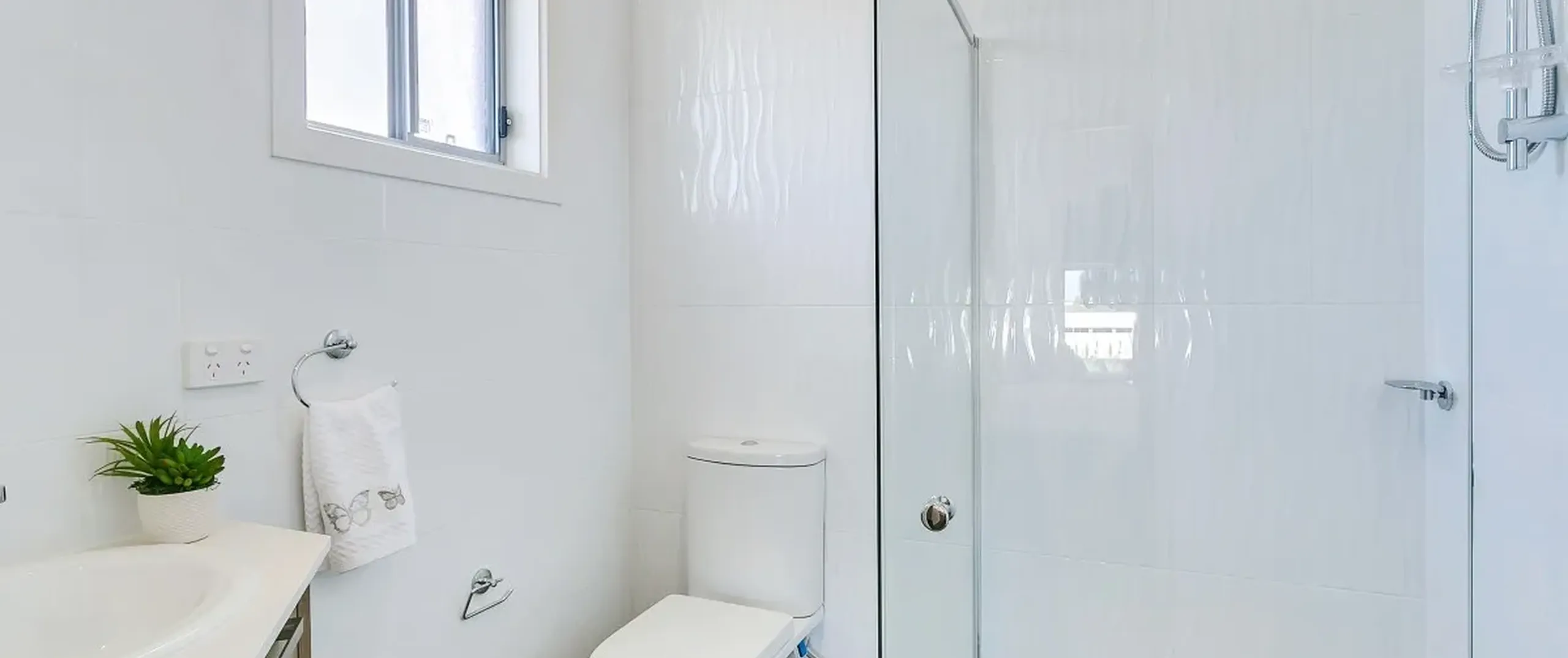 - Sparkling main bathroom with floor to ceiling tiles and separate bathroom and shower