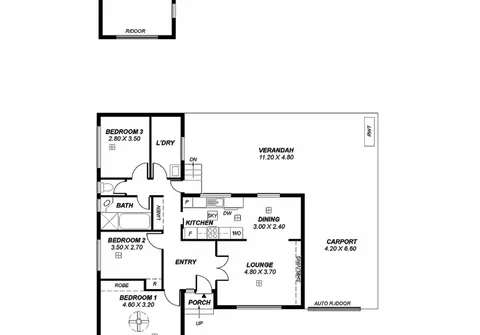 - Carport with high clearance, automatic roller door and drive through access to rear