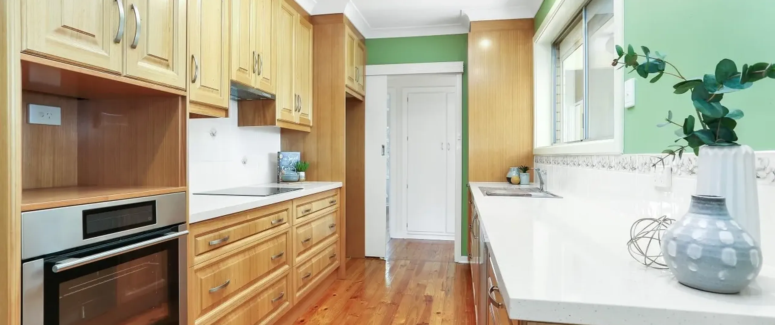 - Pristine, Tasmanian oak Alby Turner kitchen with stone bench top and Asko dishwasher