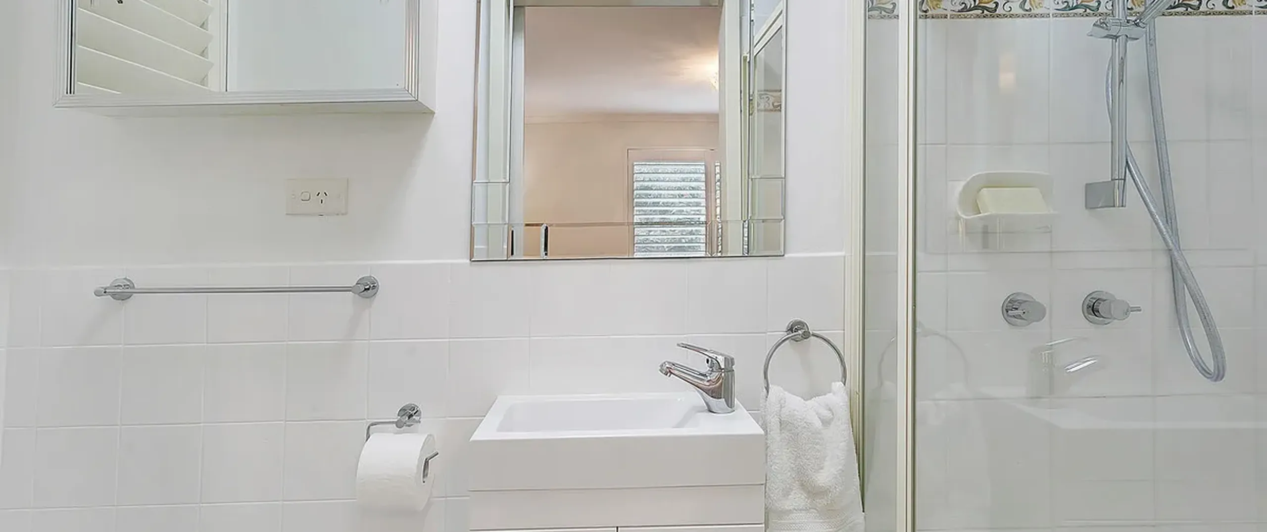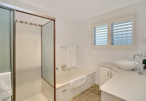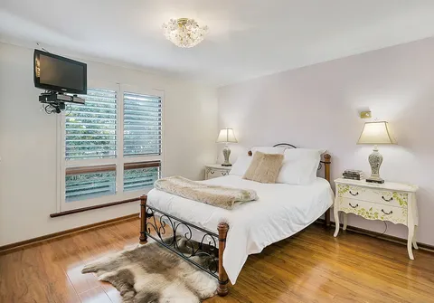 - Master bedroom with built-in robes, wooden floors, plantation shutters, upgraded ensuite and mounted TV included