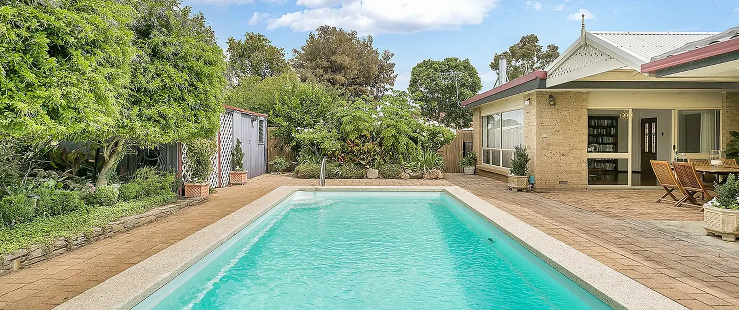 - Garden/tool shed plus store room/pool equipment enclosure