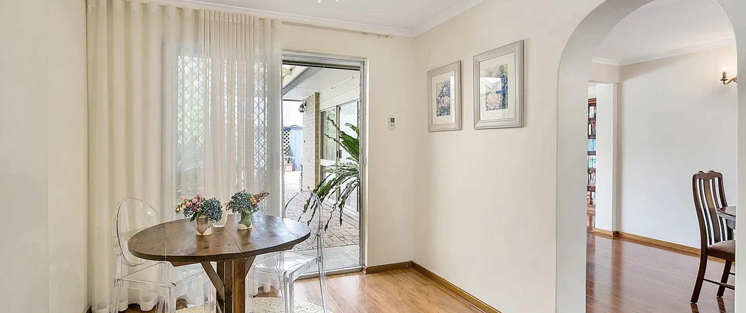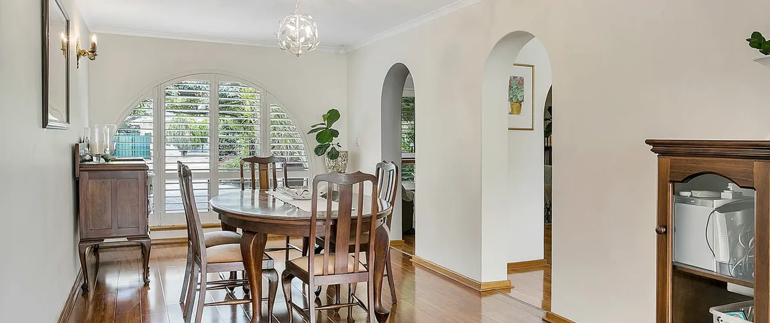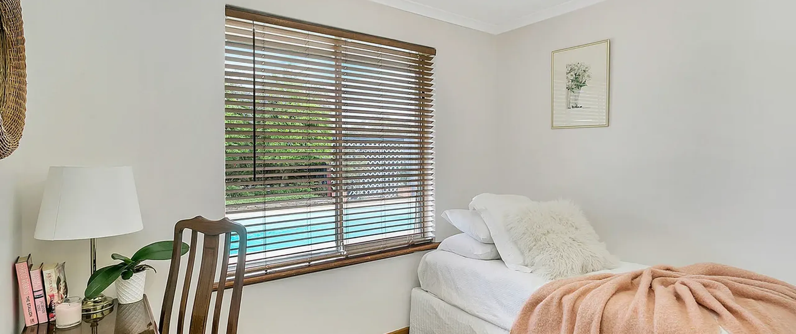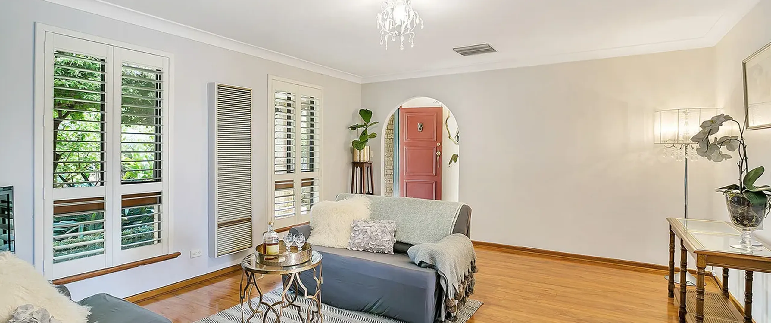 - Quality window dressings including white plantation shutters, wooden shutters and elegant new floor to ceiling sheer curtains