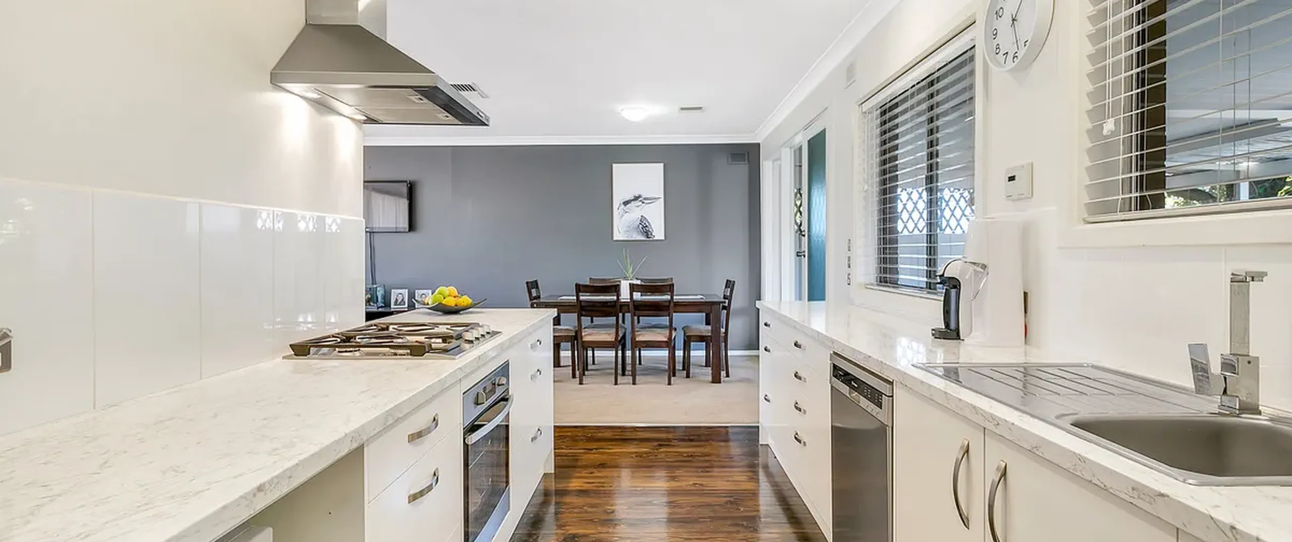- Modern, stylish Farquhar kitchen with stainless steel appliances, soft closing drawers, dishwasher, gas cooktop and walk-in pantry