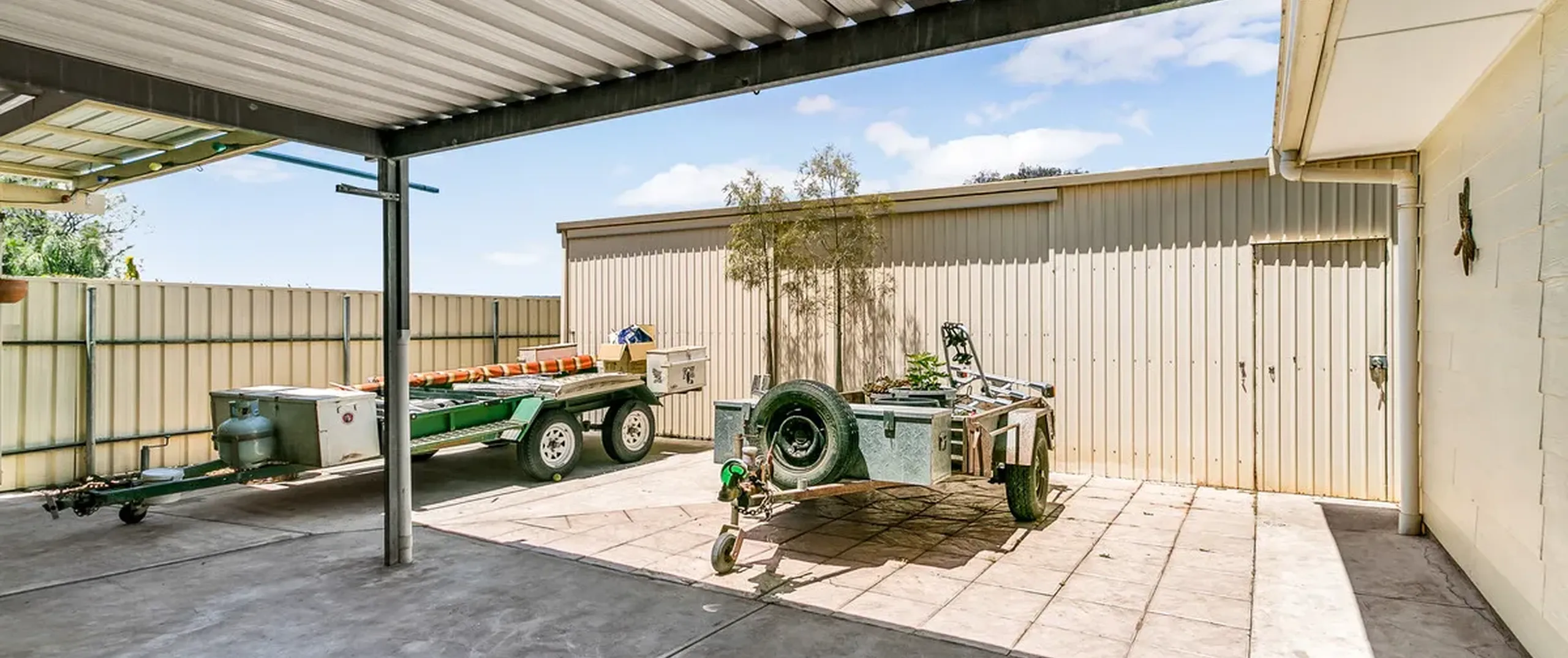 - Undercover accommodation for 2 cars with automatic roller door and further space for another 5 cars on the property.