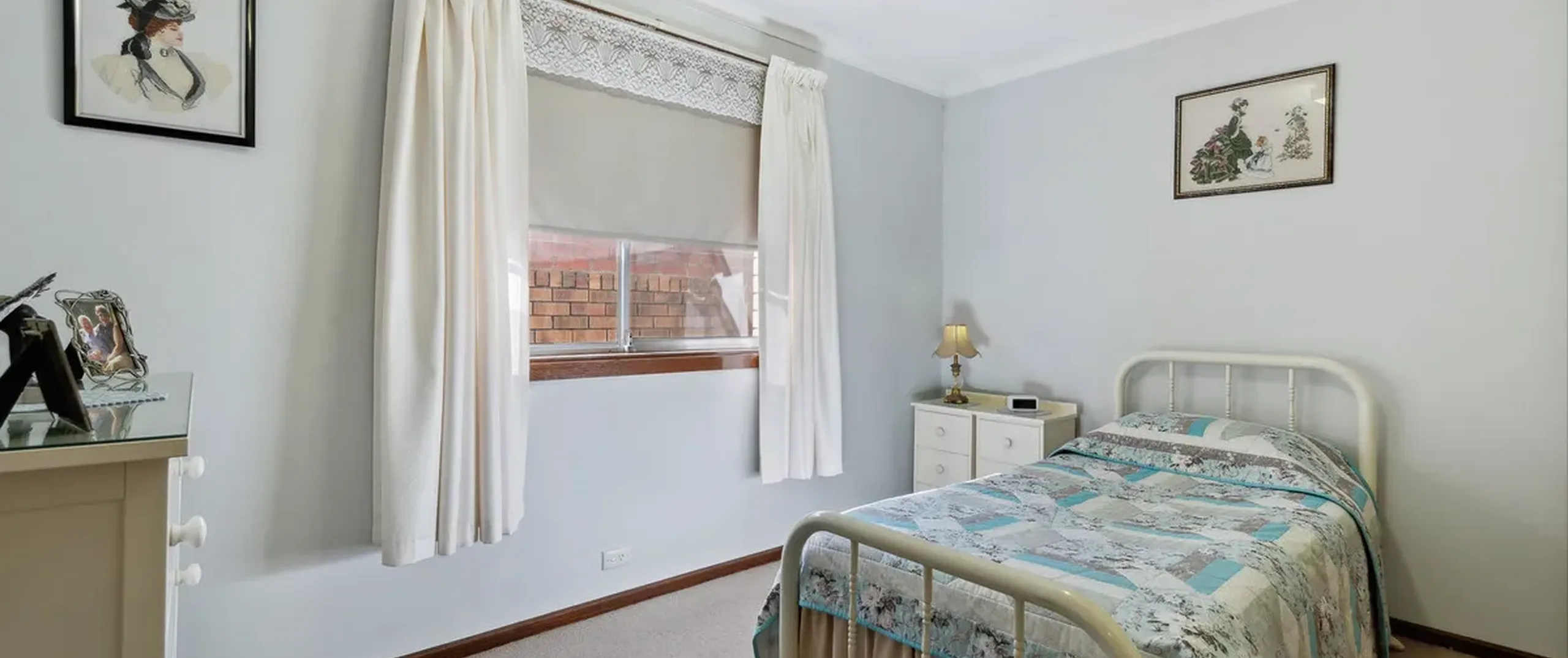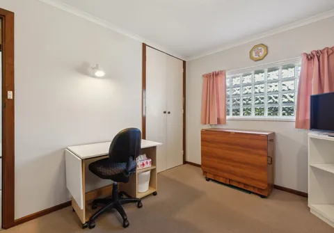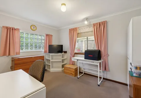 Upon entry, you're greeted by a light-filled lounge and dining room with air conditioning, creating a welcoming space to unwind with loved ones. Transitioning effortlessly from the lounge, the meals area leads into the kitchen, which boasts an electric cooktop, ample cupboard and bench space, all complemented by a neutral countertop and tiled splashback, forming a delightful focal point for the cook of the home.