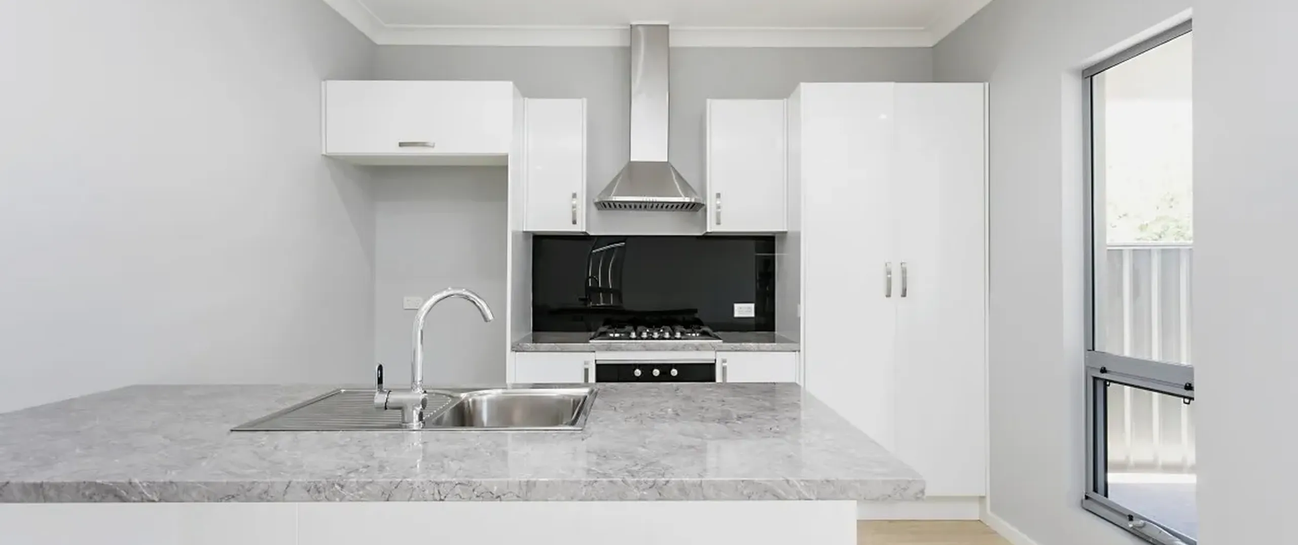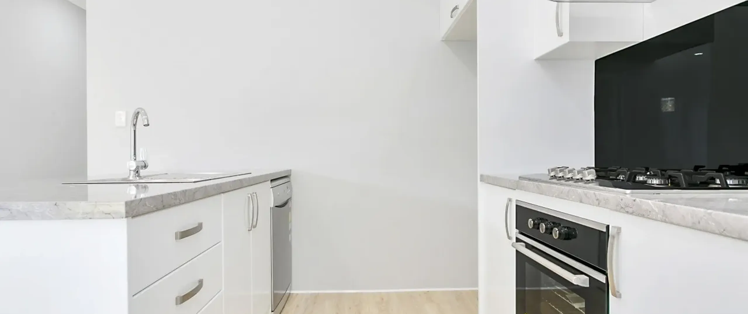 - Modern kitchen with stainless steel appliances, gas cooktop, dishwasher and ample cupboard space