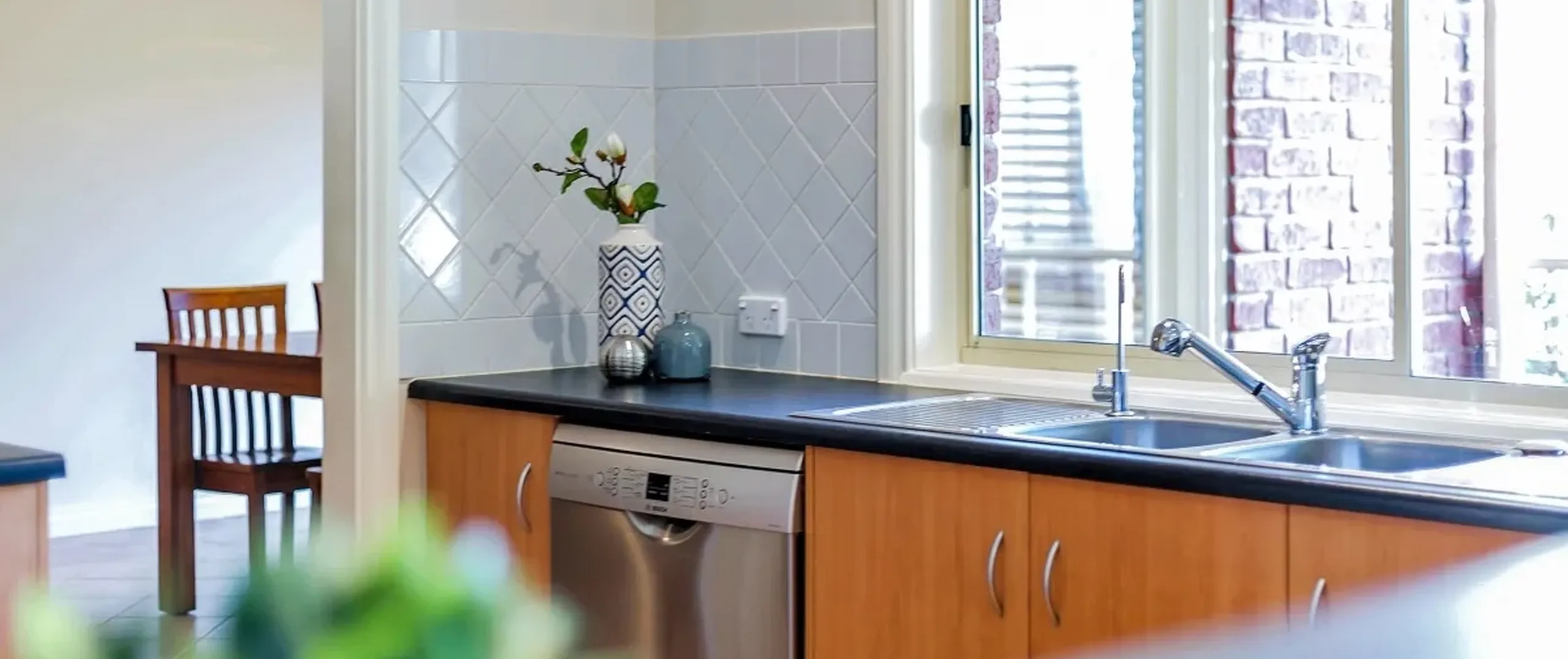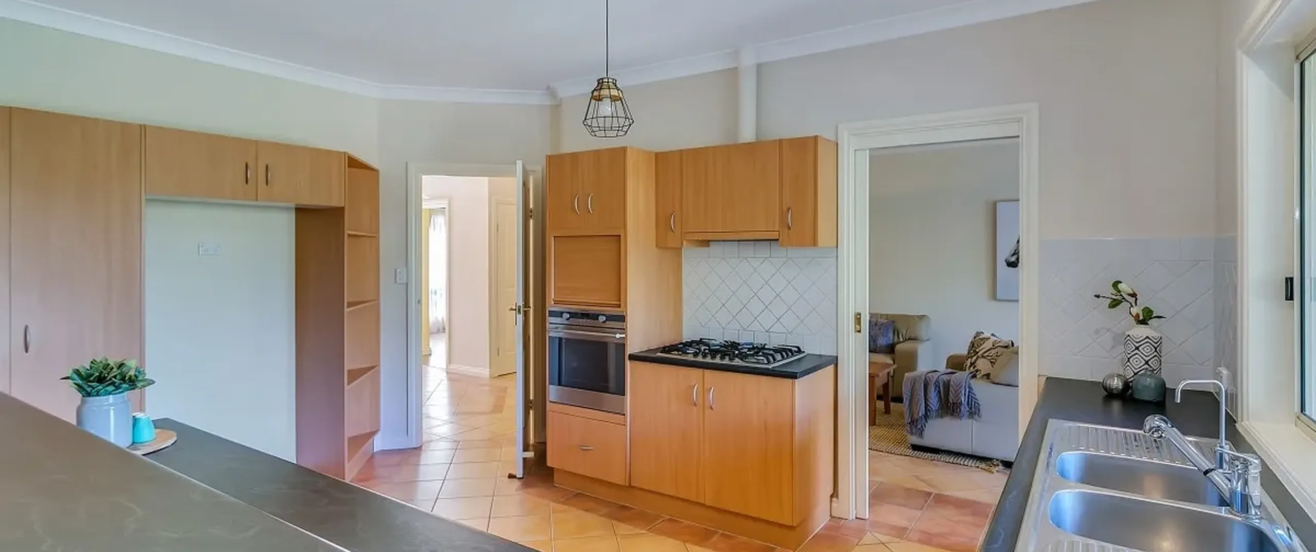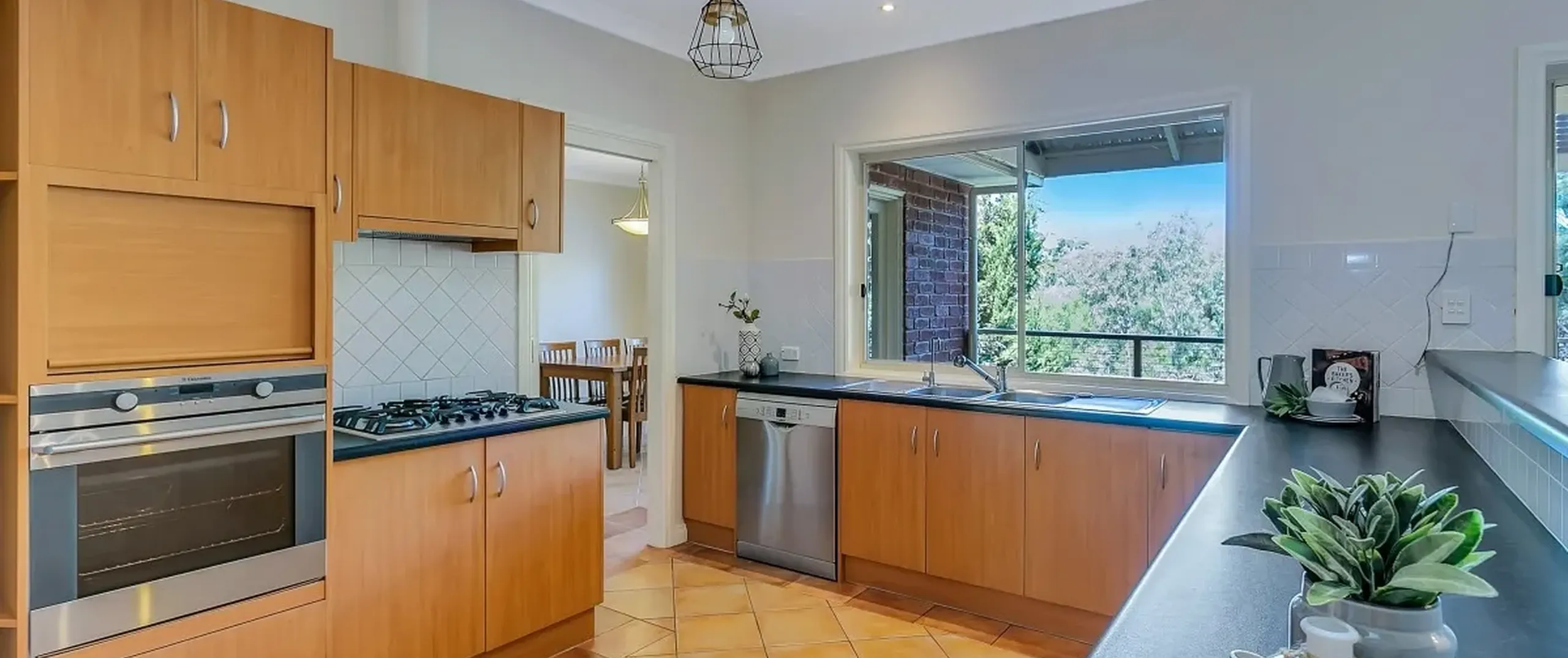 - Modern kitchen with Bosch dishwasher, gas cooktop, ample bench and cupboard space and breakfast bar