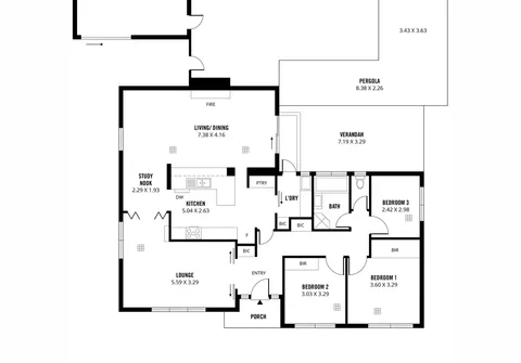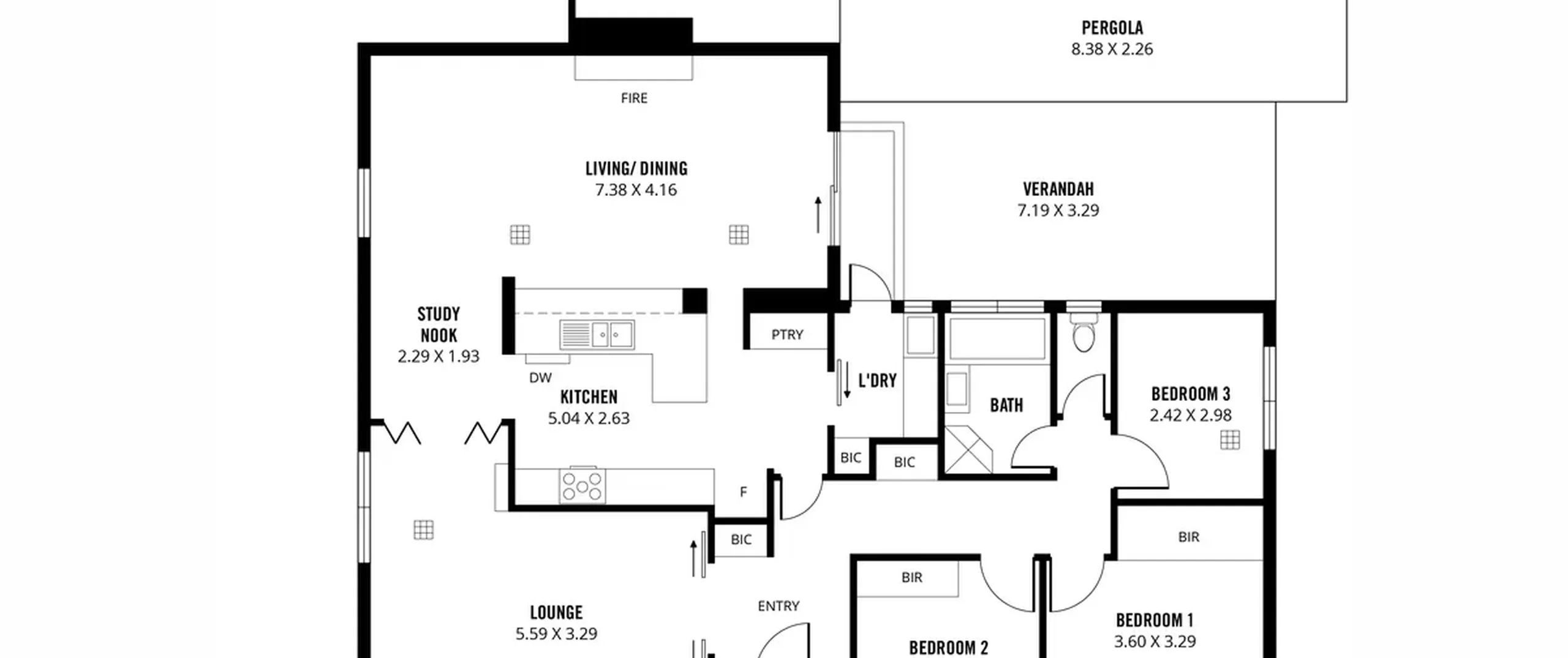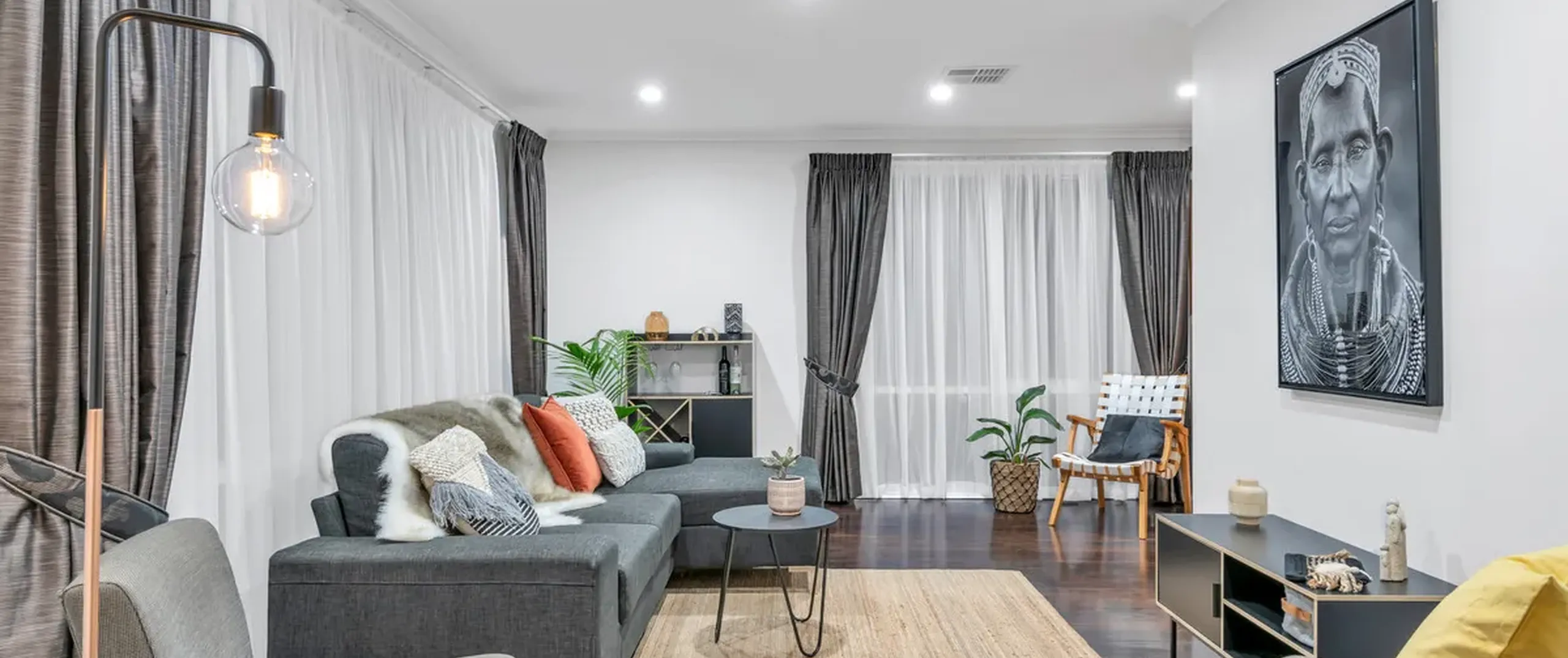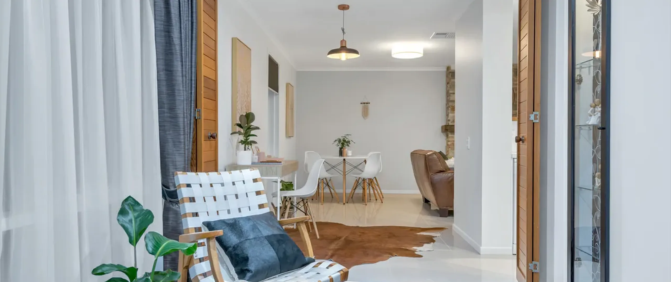 - Formal lounge room with hardwood flooring and bi-fold doors leading to the study nook and open plan living area