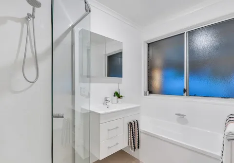 - Stylish main bathroom with separate bath featuring a water filling control and shower with new screen, temperature controlled water for both shower and bath