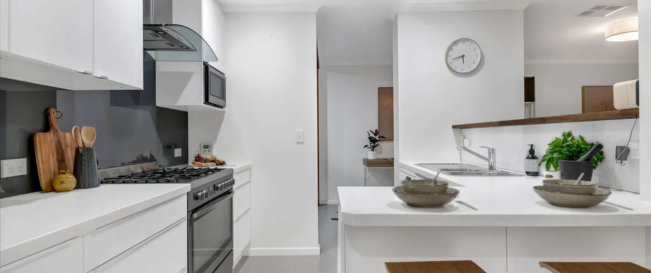 - Contemporary kitchen with stainless steel appliances, gas cooktop, dishwasher, soft close drawers, temperature controlled water and ample bench and cupboard space
