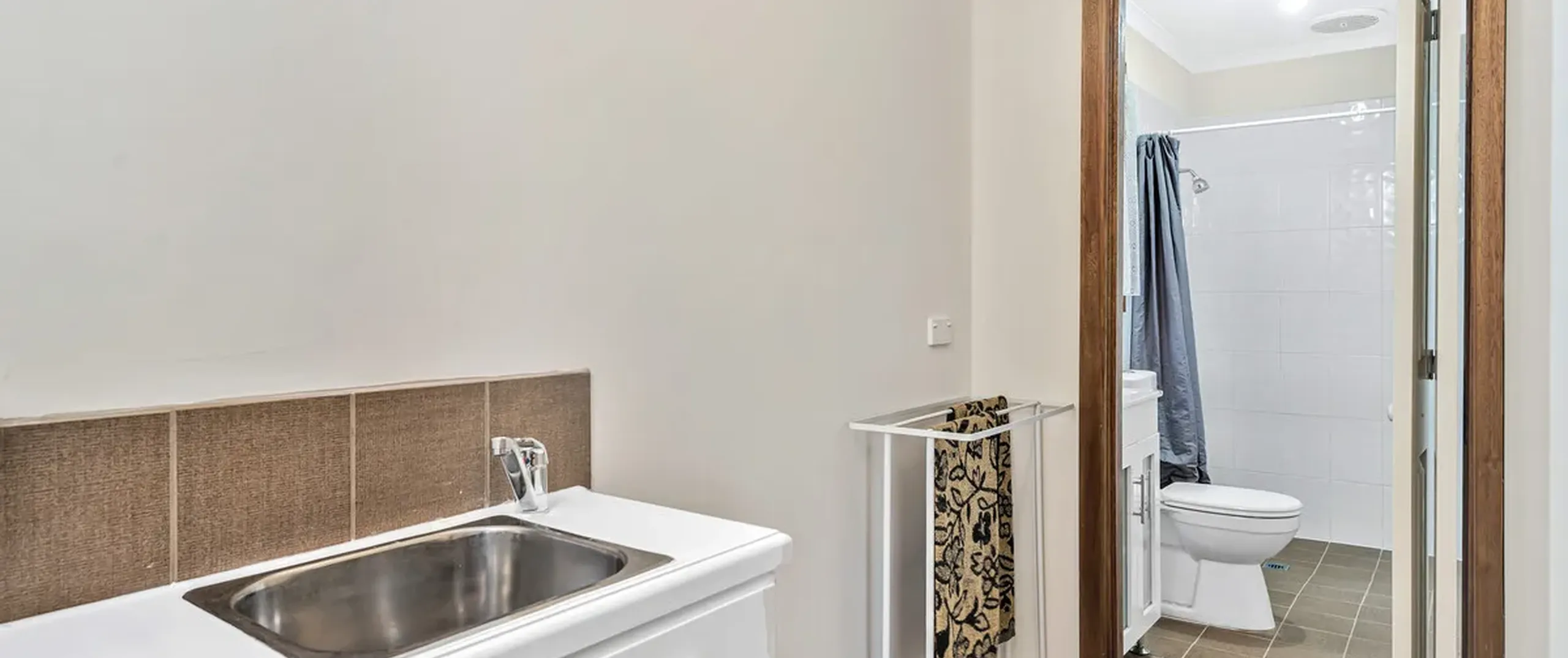 - Private modern laundry with built in joinery and dryer + washing machine provisions