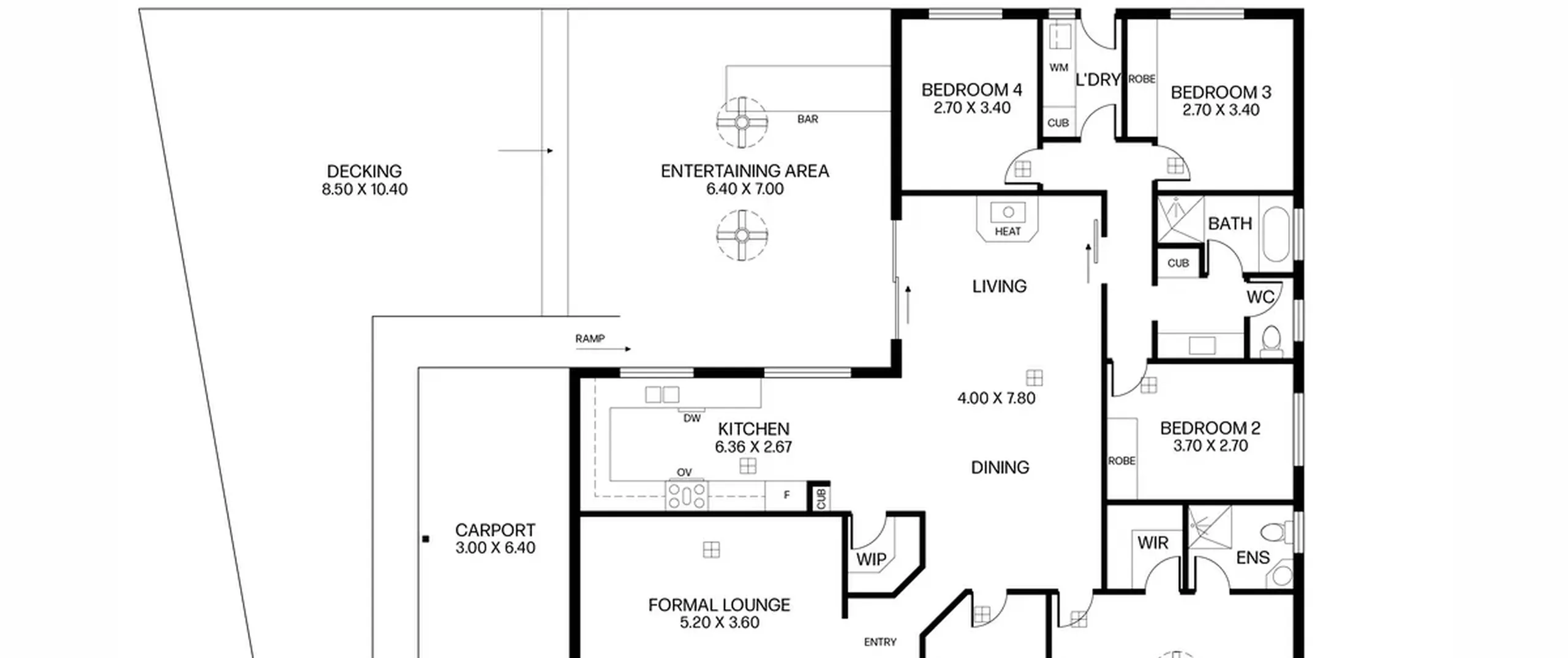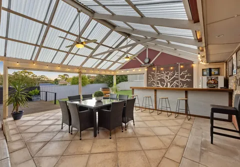The space doesn't just stop inside, featuring an incredible outdoor entertaining area with a pitched roof, two ceiling fans and built-in bar that overlooks the open decking and large lawn area for the kids and pets to run free and enjoy. Additionally providing ample space to accommodate for plenty of off-street parking at the rear of the home and in the carport.