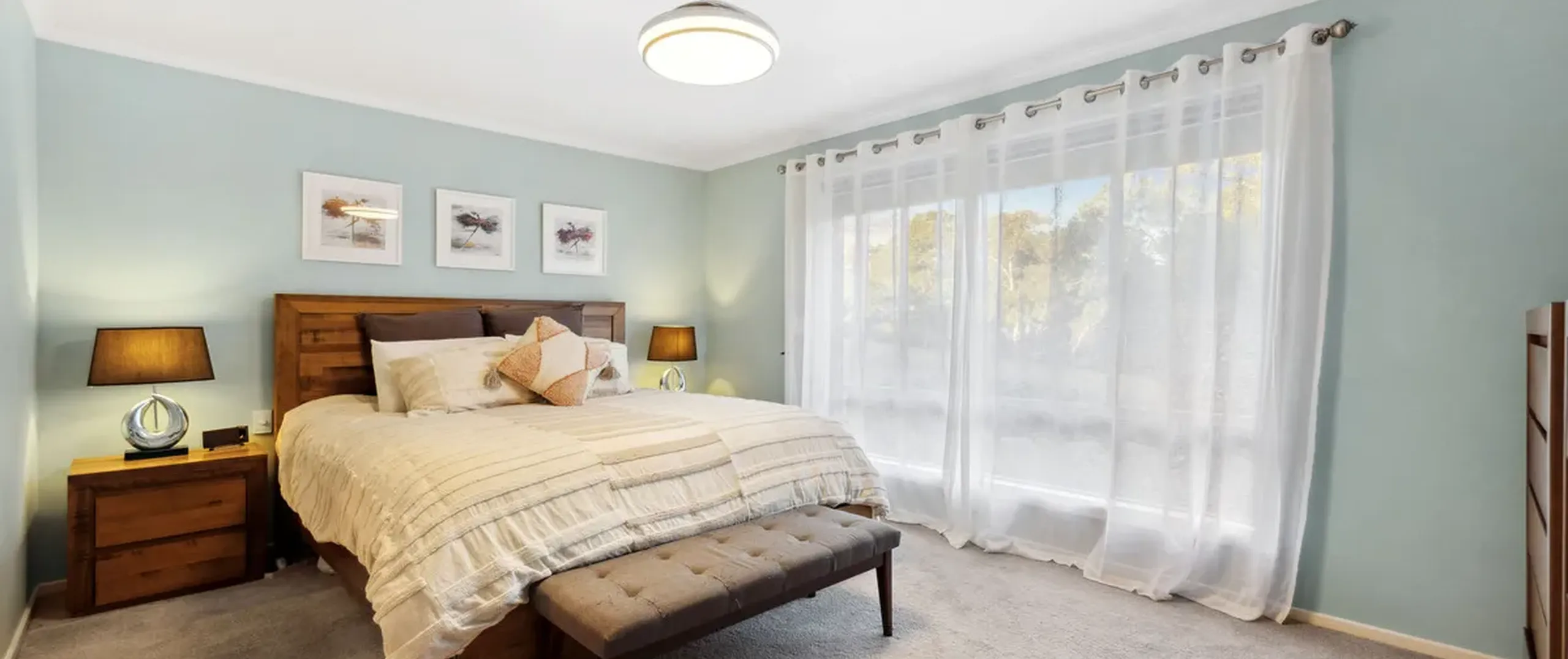 - Master bedroom with walk-in robe, ensuite and ceiling fan