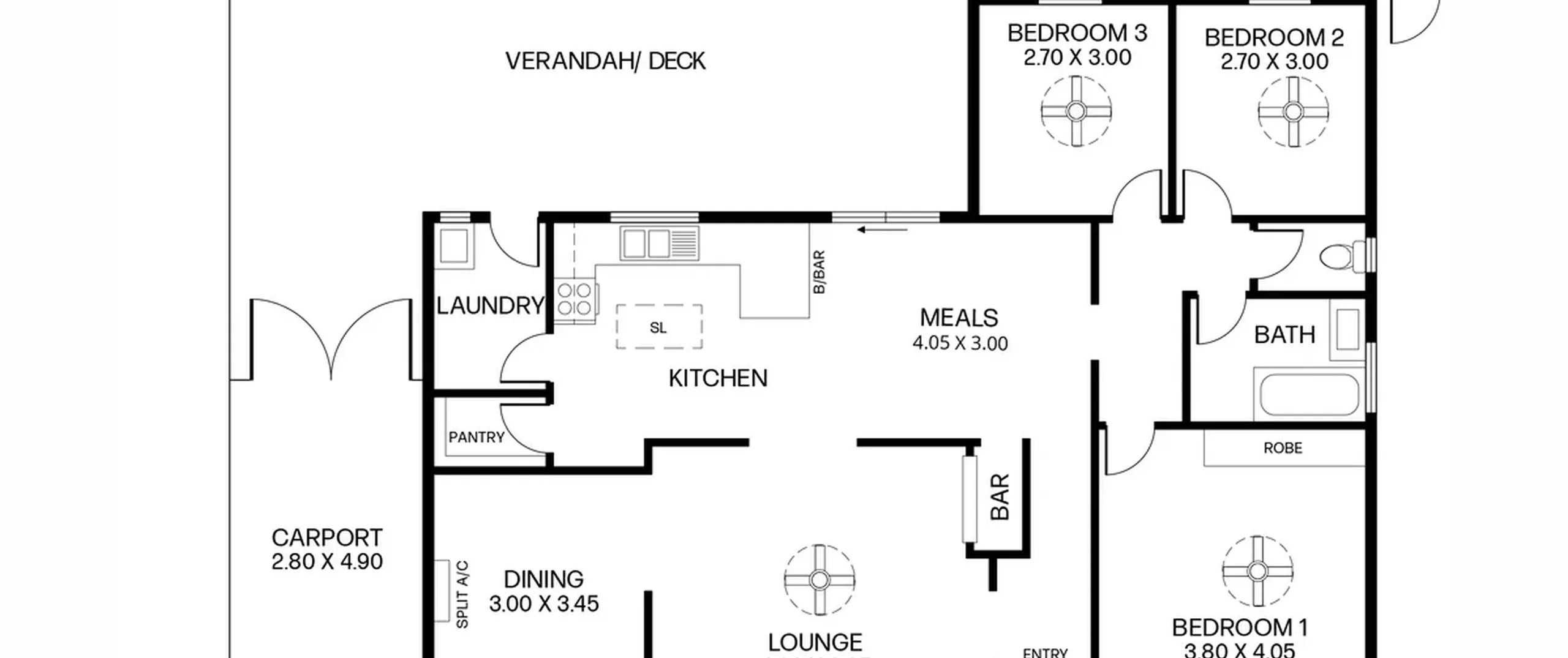 - Three bedrooms all complete with ceiling fans; master with built-in robe