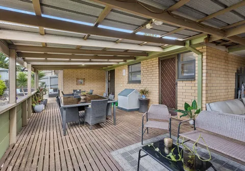As you enter, you're greeted by a bright and airy interior, complemented by modern flooring that creates a warm and inviting atmosphere. The home boasts a seamless flow, transitioning from the open-plan living and dining area with high, raked ceilings to the kitchen and a secondary dining space. From there, step out into the backyard, where a spacious, covered outdoor entertaining area overlooks the spacious lawn area - perfect for watching the kids and pets play or hosting gatherings with family and friends. This exceptional property is complete with three bedrooms, a central bathroom, a separate laundry and a secure carport.