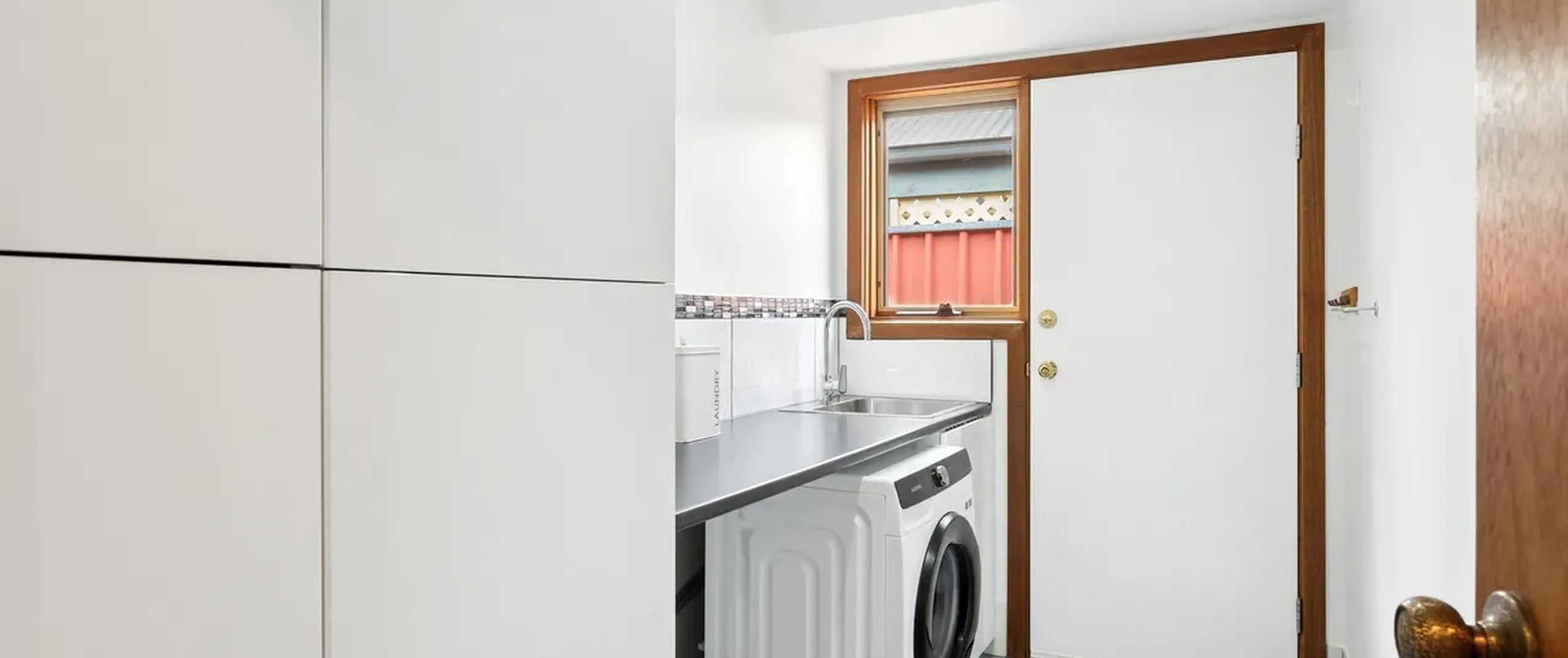 - Laundry with storage, sink and external access