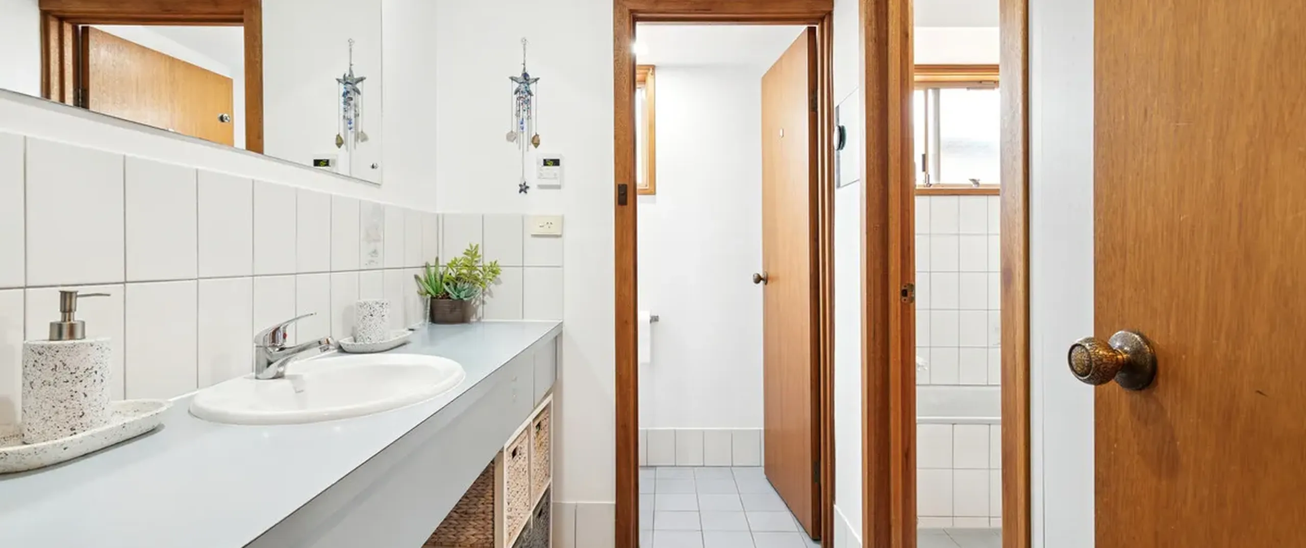 - Bathroom with a shower, bath, separate WC, large vanity and linen cupboard