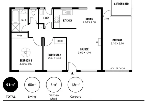 - Single secure carport with roller door and access to rear