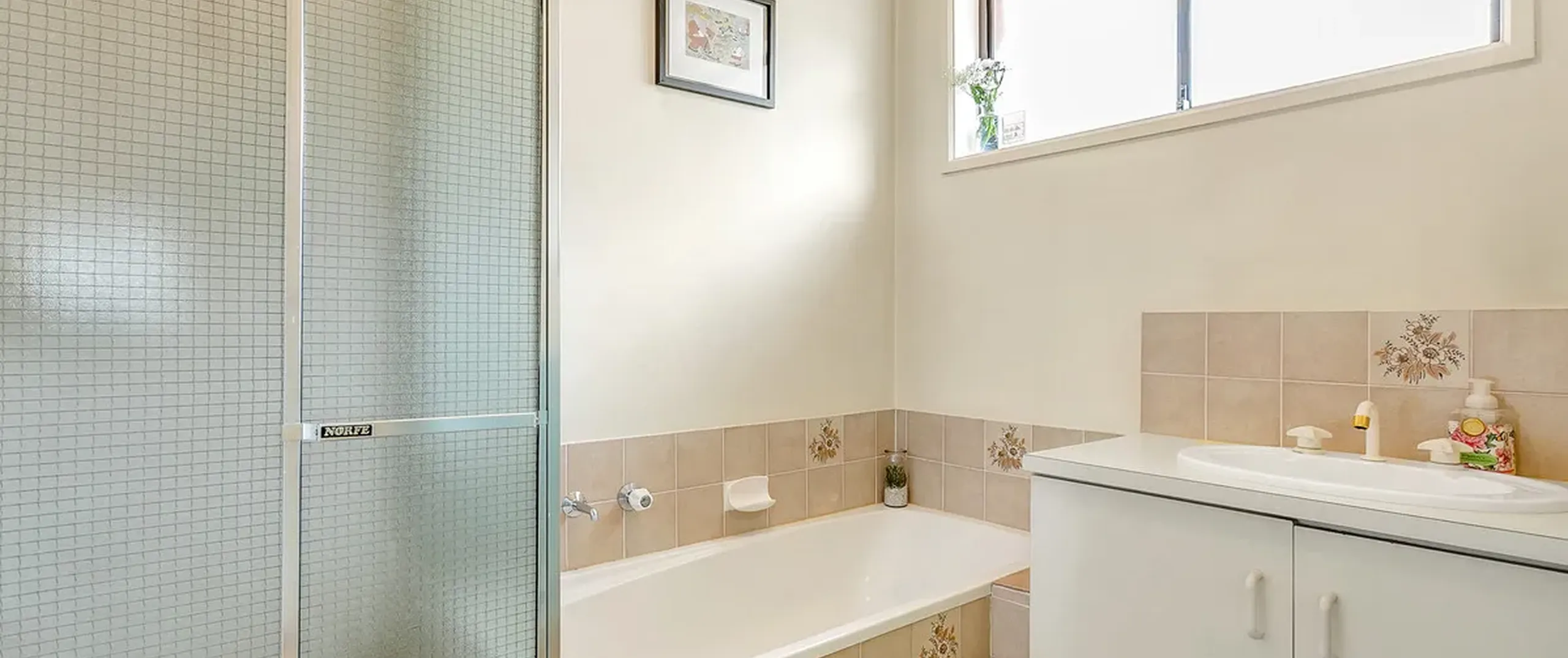 - Neat and tidy bathroom with separate bath and shower + separate toilet
