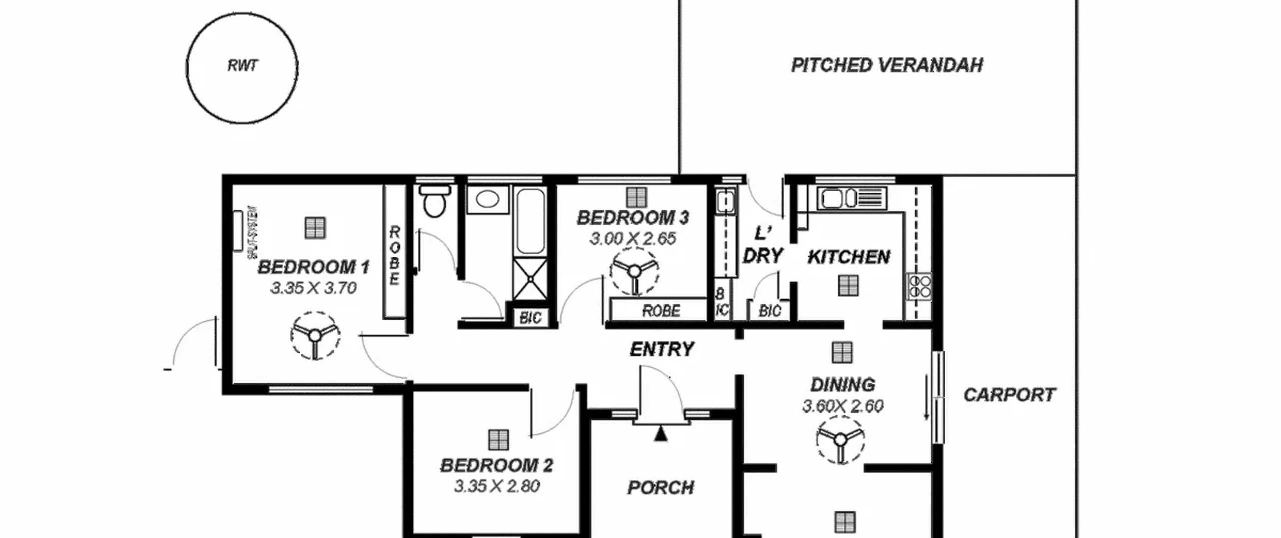 - Good sized bedrooms 2 and 3, bedroom 3 with ceiling fan and built-in robe