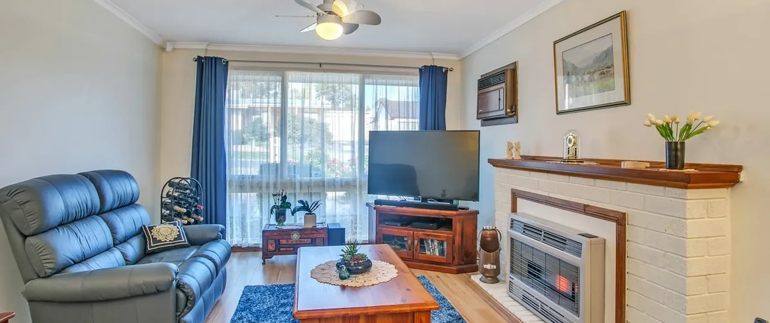 - Large, light filled lounge with ceiling fan, gas heater and reverse cycle air conditioner